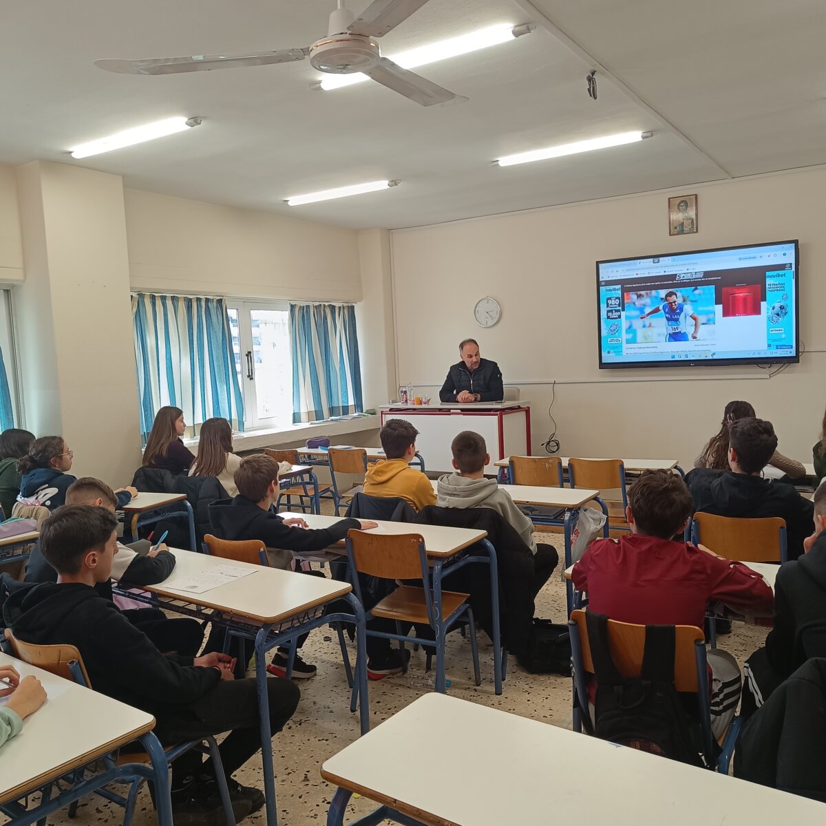 Ο κ. Δημότσιος παραχώρησε συνέντευξη στους μαθητές του Ομίλου, κατά τη διάρκεια της οποίας αναφέρθηκε στην αγωνιστική του διαδρομή και μοιράστηκε εμπειρίες από το υψηλότερο επίπεδο του παγκόσμιου αθλητισμού, φωτίζοντας τις δυσκολίες, τις θυσίες και τις αξίες που διαμόρφωσαν την πορεία του στον πρωταθλητισμό.