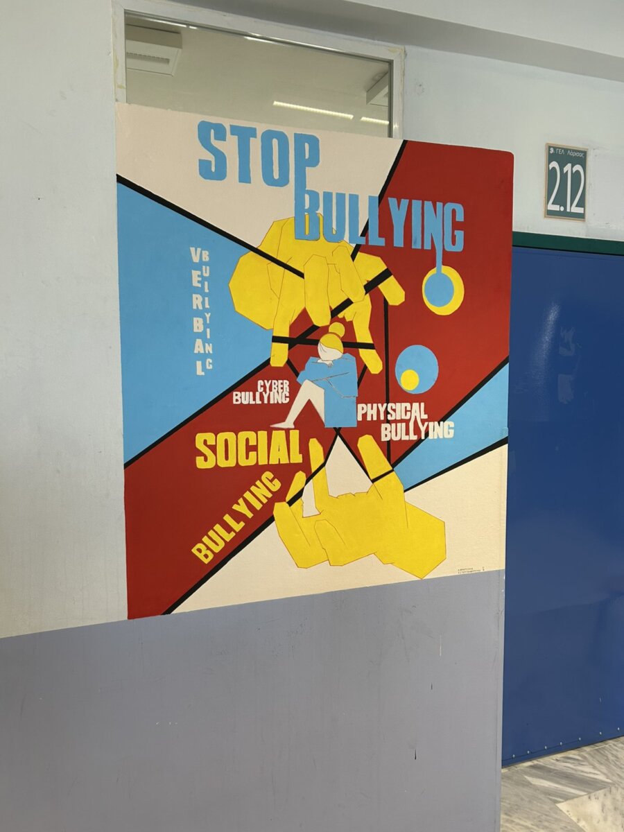 Στον 2ο όροφο, οι μαθητές Αφροδίτη Κουκουσούλη και Πέτρος Σταυροθανασόπουλος ασχολήθηκαν με ένα εξίσου κρίσιμο ζήτημα: το bullying. Το έργο τους αναδεικνύει τις ψυχολογικές επιπτώσεις του σχολικού εκφοβισμού, τη μοναξιά, τον φόβο αλλά και τη δύναμη της στήριξης και της αλληλεγγύης. Μέσα από εικόνες και σύμβολα που αγγίζουν άμεσα τον θεατή, το μήνυμα είναι ξεκάθαρο: κανένα παιδί δεν είναι μόνο του και η σιωπή δεν πρέπει να είναι επιλογή. Το έργο καλεί τη σχολική κοινότητα να αναγνωρίζει, να μιλά και να δρα ενάντια σε κάθε μορφή βίας.