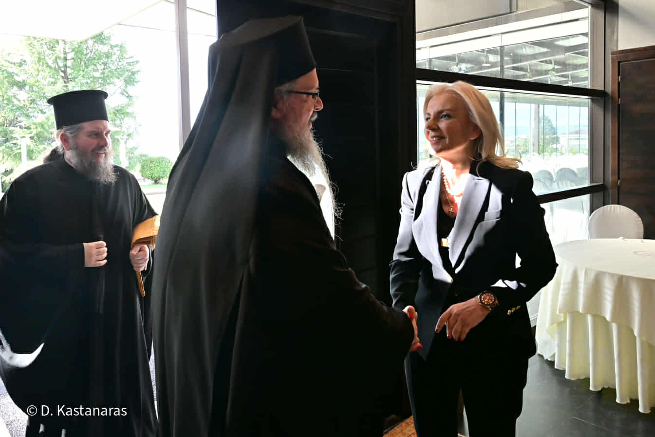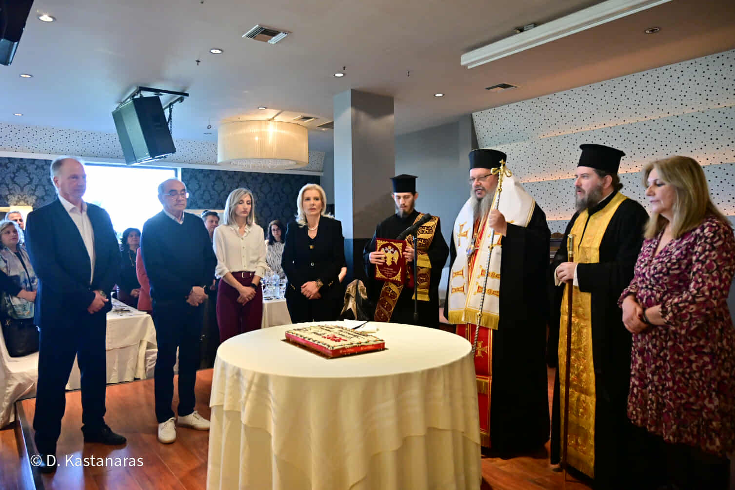 Την πίτα ευλόγησε ο Σεβασμιότατος Μητροπολίτης Λαρίσης και Τυρνάβου κ.κ. Ιερώνυμος, στην παρουσία του οποίου στάθηκε η Γενική Γραμματέας, λέγοντας πως αυτή του ακριβώς η παρουσία δίνει ιδιαίτερη αξία στην εκδήλωση. «Το ποιμαντικό σας έργο, ο λόγος σας, η ουσιαστική στήριξή σας στην κοινωνία, αποτελούν σημείο αναφοράς για όλους μας», σημείωσε χαρακτηριστικά.