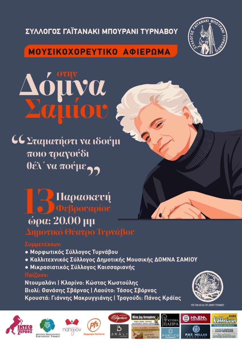 Η εκδήλωση θα γίνει στις 13 Φεβρουαρίου και ώρα 8:00 μμ με είσοδο ελεύθερη, στο Δημοτικό Θέατρο Τυρνάβου.