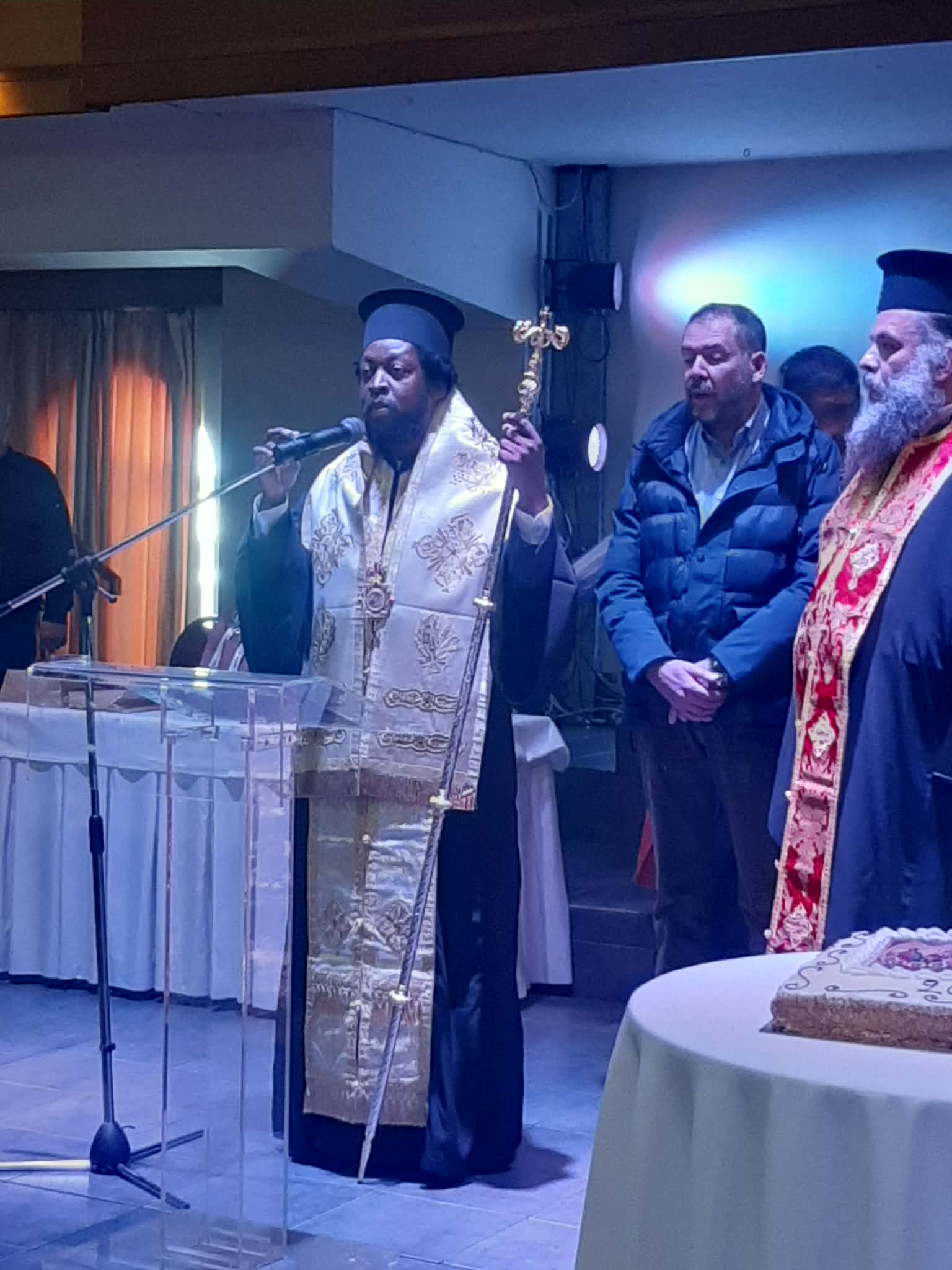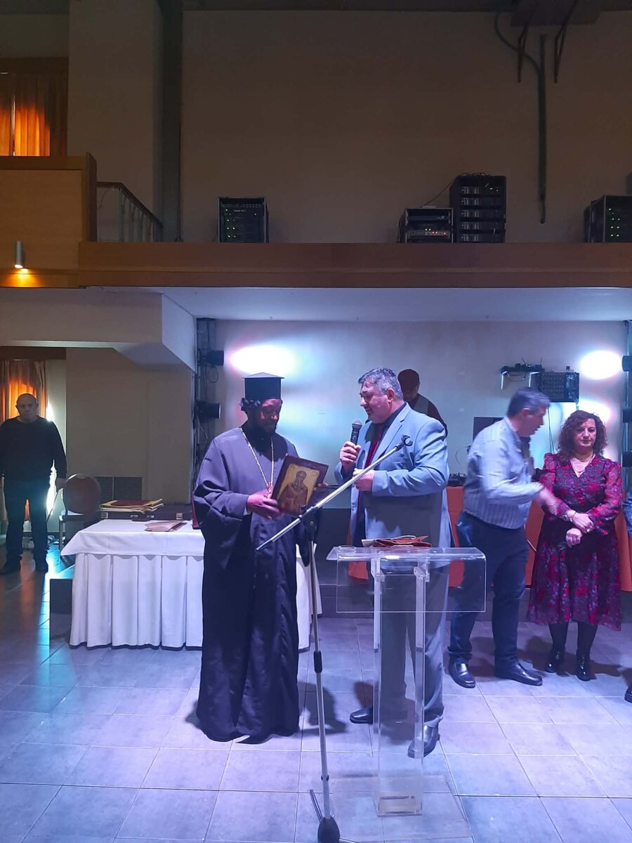 Την πίτα ευλόγησε ο Επίσκοπος Τζίντζα και Ανατολικής Ουγκάντα κ.κ. Σίλβεστρο. Παραβρέθηκαν ο βουλευτής της Νίκης κ. Γιώργος Ρούντας, ο Αντιπεριφερειάρχης Πρωτογενούς Τομέα και Αγροτικής Οικονομίας κ. Δημήτρης Τσέτσιλας, ο Αντιπεριφερειάρχης Υγείας κ. Ευάγγελος Αποστόλου καθώς και η Αντιδήμαρχος Αγροτικής και Περιαστικής Ανάπτυξης του Δήμου Λαρισαίων κ. Ελισάβετ Παπαδοπούλου.