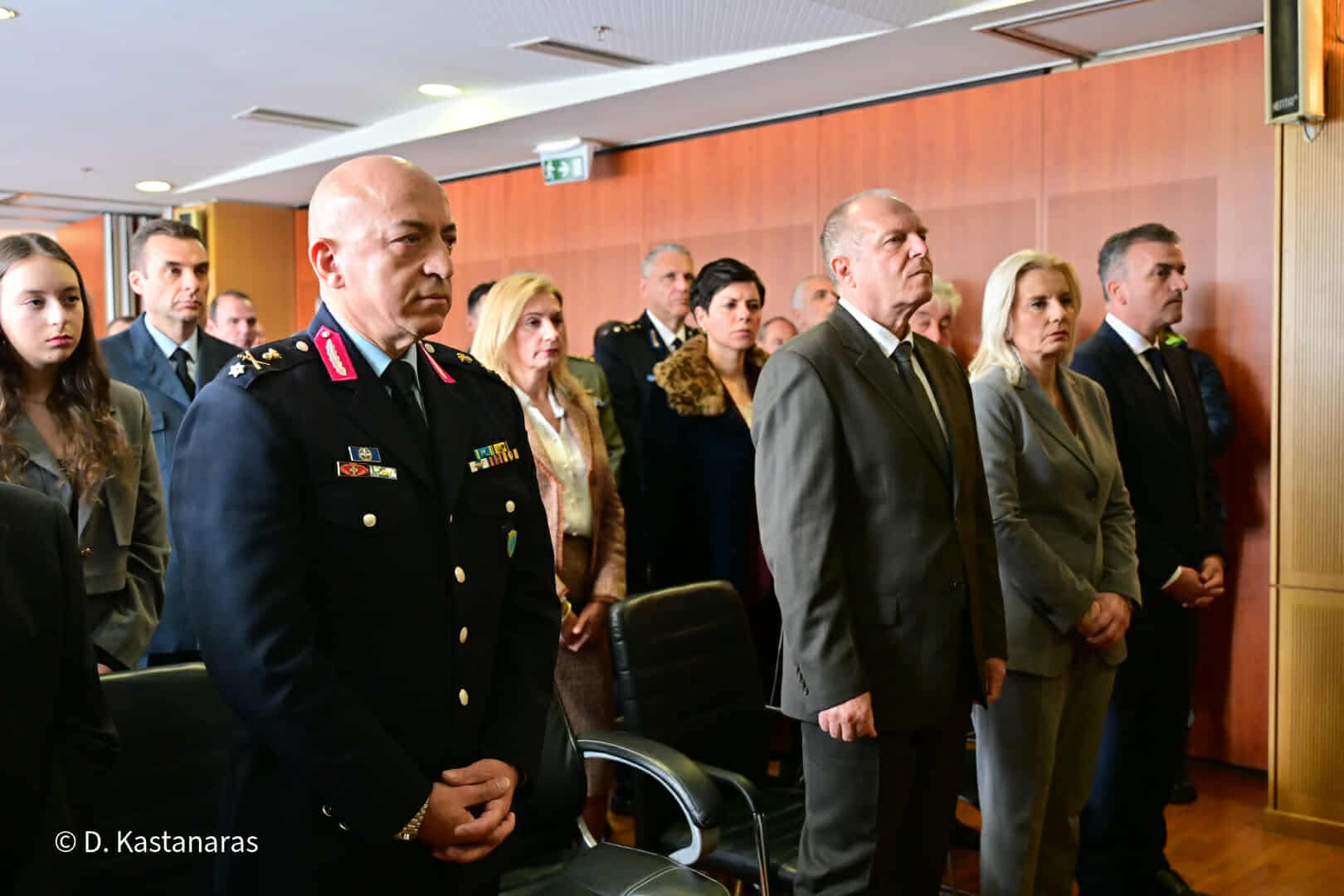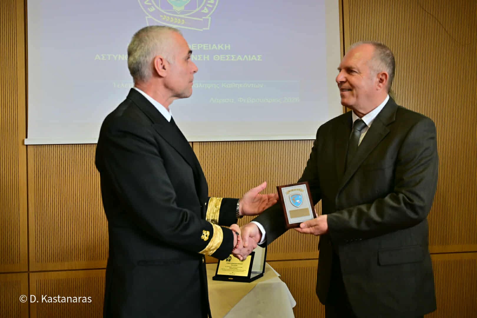 «Η σημερινή μέρα αποτελεί για μένα μια ιδιαίτερα φορτισμένη στιγμή ευθύνης, τιμής αλλά και βαθιάς προσωπικής συγκίνησης… Η ασφάλεια και κοινωνική συνοχή αποτελούν κοινό μας στόχο και συλλογική ευθύνη… Η ασφάλεια είναι πρωτίστως σχέση εμπιστοσύνης», ανέφερε από πλευράς του ο νέος ΓΕΠΑΔ Θεσσαλίας, σημειώνοντας ότι θα ανταποκριθεί με ταπεινότητα και αίσθηση καθήκοντος, ενώ παράλληλα έπλεξε το εγκώμιο του προκατόχου του.