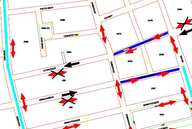 · Μονοδρόμηση της οδού Ατλαντίδος από την οδό Ακαδημίας μέχρι την οδό Αχιλλέως (Ο.Τ. 246Α, Ο.Τ. 235) με φορά κίνησης από οδό Ακαδημίας προς την οδό Αχιλλέως