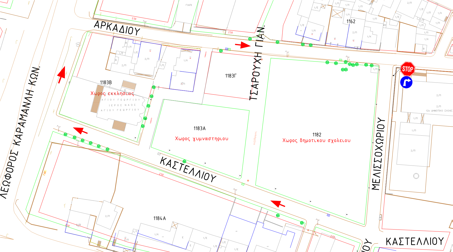 · Προτεραιότητα της οδού Χανίων, έναντι της παρόδου στο Ο.Τ.1179Α)