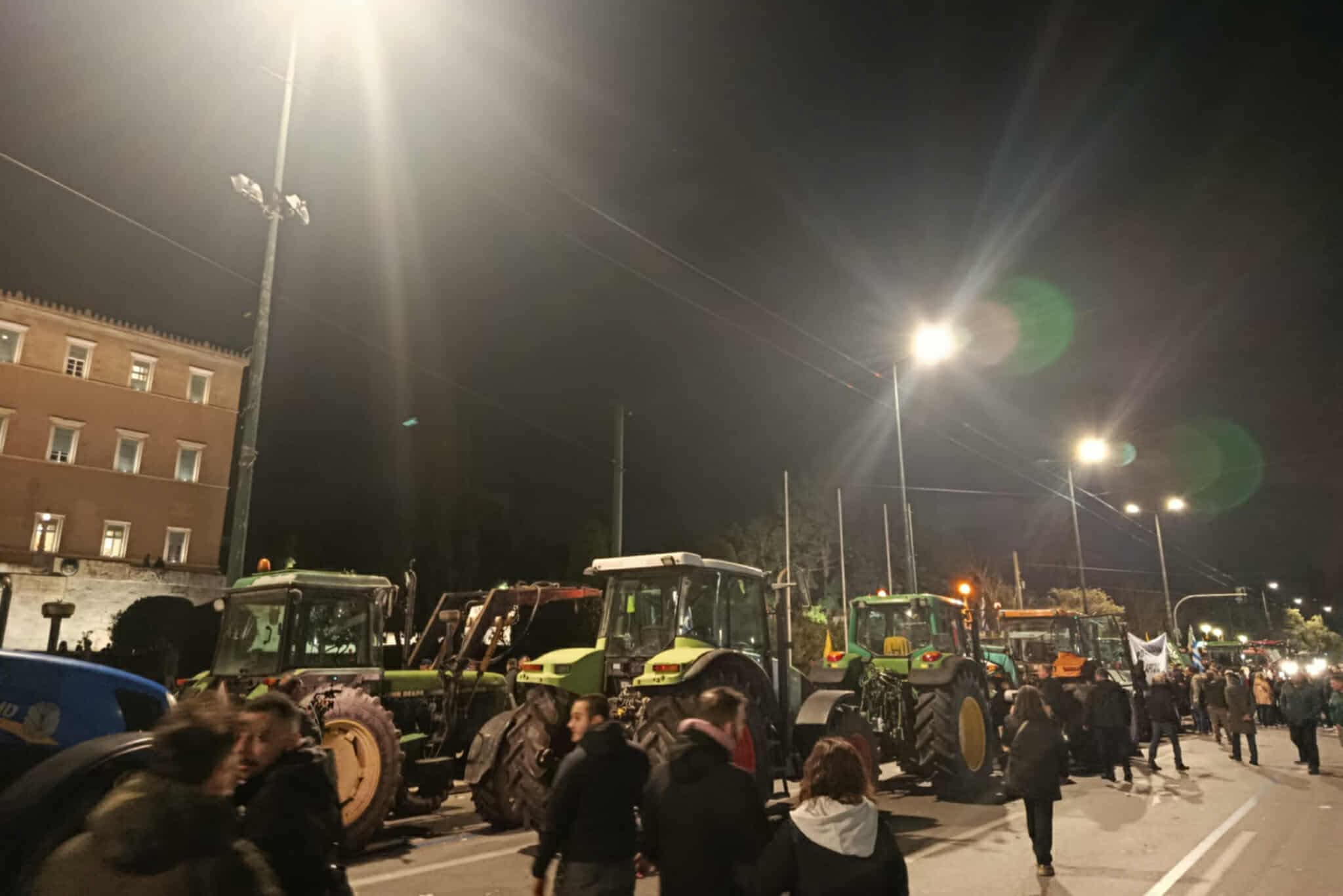 Δεκάδες τρακτέρ από τη Θεσσαλία έφτασαν από το απόγευμα στο Σύνταγμα, όπου οι αγρότες σκοπεύουν να διανυκτερεύσουν, στέλνοντας μήνυμα αποφασιστικότητας προς την κυβέρνηση.