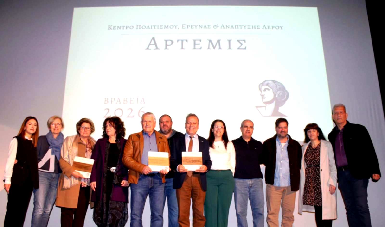 Σκοπός των Βραβείων «Άρτεμις» είναι η ανάδειξη προσώπων, τα οποία αποτελούν φωτεινά παραδείγματα προσφοράς και καλούνται να λειτουργήσουν ως πηγή έμπνευσης και πρότυπα προς μίμηση για την τοπική κοινωνία του νησιού. Το βραβείο Πολιτιστικής Προσφοράς απονεμήθηκε στον Νικόλαο Γιαννουκά, ο οποίος με τη μουσική του έχει εμπλουτίσει πολιτιστικά δρώμενα κι εκδηλώσεις, προβάλλοντας την πολιτιστική ταυτότητα της Λέρου, καθώς και για τη ζωντανή μετάδοση της τοπικής μουσικής παράδοσης στη νεότερη γενιά. Το βραβείο Κοινωνικής Προσφοράς απονεμήθηκε στον Σύλλογο της Λέρου «Γυναίκες Χωρίς Σύνορα», για τη σπουδαία κοινωνική κι εθελοντική προσφορά του και το παρέλαβαν η πρόεδρος Άννα Ταχλιαμπούρη και η τέως πρόεδρος Άννα Καρπαθάκη.