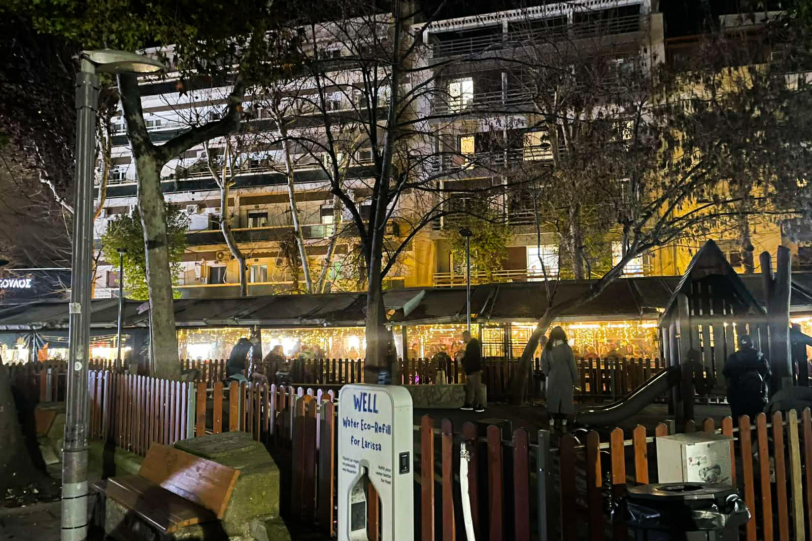 Όπως φαίνεται και στις φωτογραφίες της LarissaPress από το βράδυ της Δευτέρας, γονείς με τα παιδιά τους βρίσκονται μέσα στον χώρο, παρά το σκοτάδι, γεγονός που εγείρει σοβαρά ζητήματα ασφάλειας.