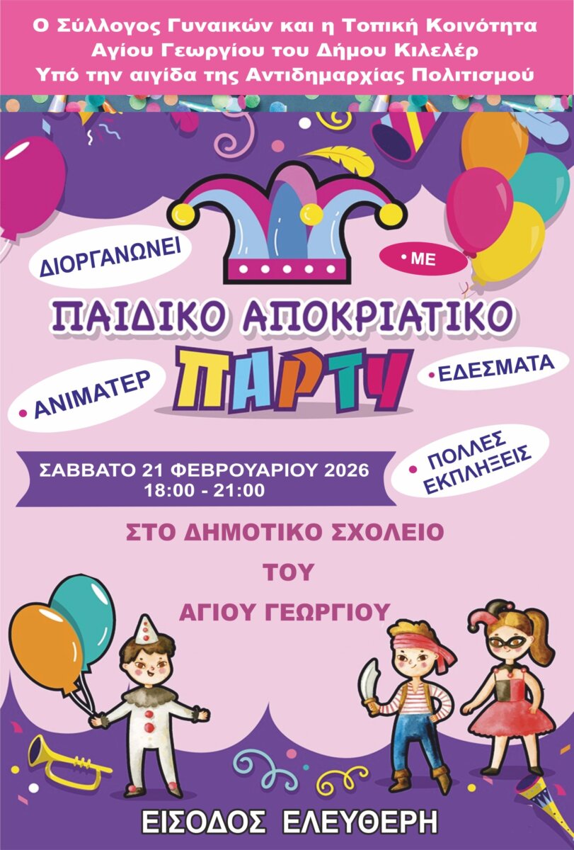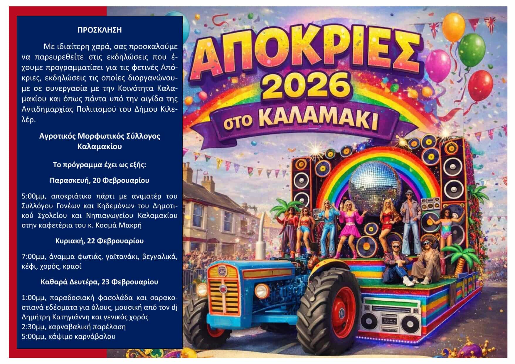 Σε αποκριάτικους ρυθμούς κινείται αυτές τις μέρες ο Δήμος Κιλελέρ. Εκδηλώσεις ετοιμάζονται για το τετραήμερο 20,21,22 και 23 Φεβρουαρίου.