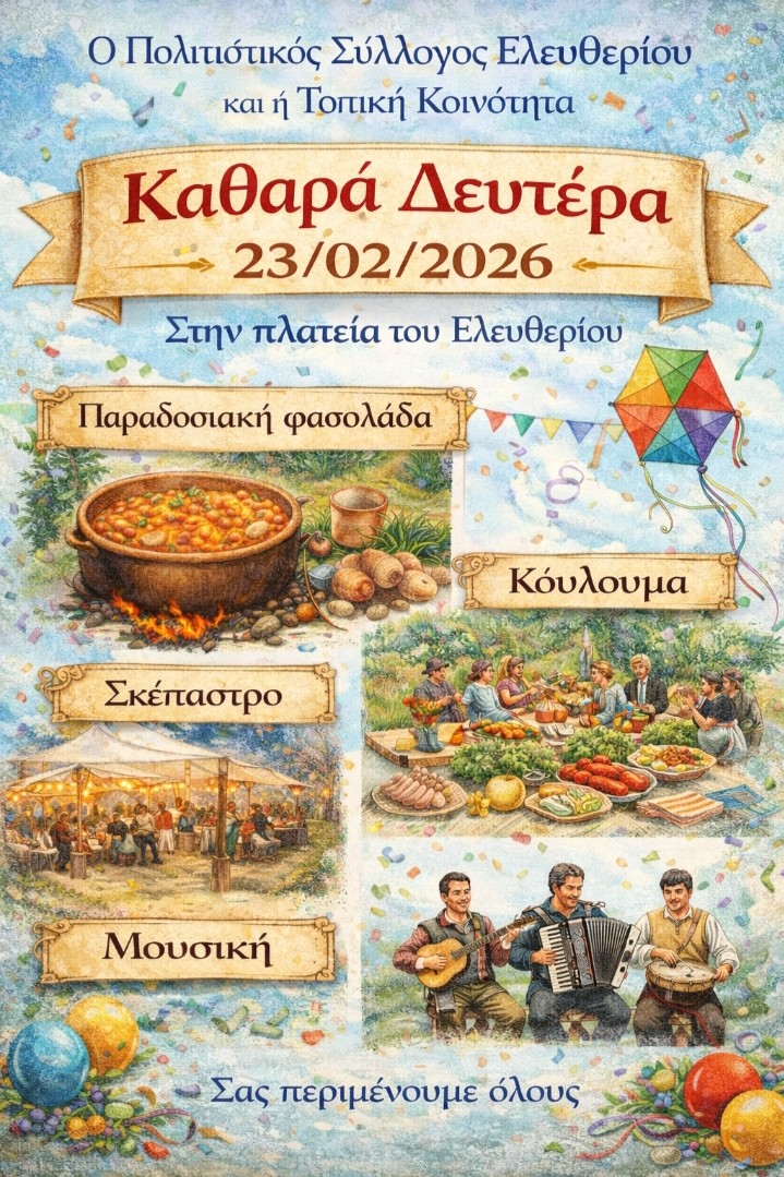 Κυριακή της Αποκριάς 22 Φεβρουαρίου στις 18:30 Αχίλλειο, Μ. Μοναστήρι, Νίκη, Σωτήριο, Αγναντερή, Μέλισσα, Νίκαια, Ελευθέριο και Μελισσοχώρι