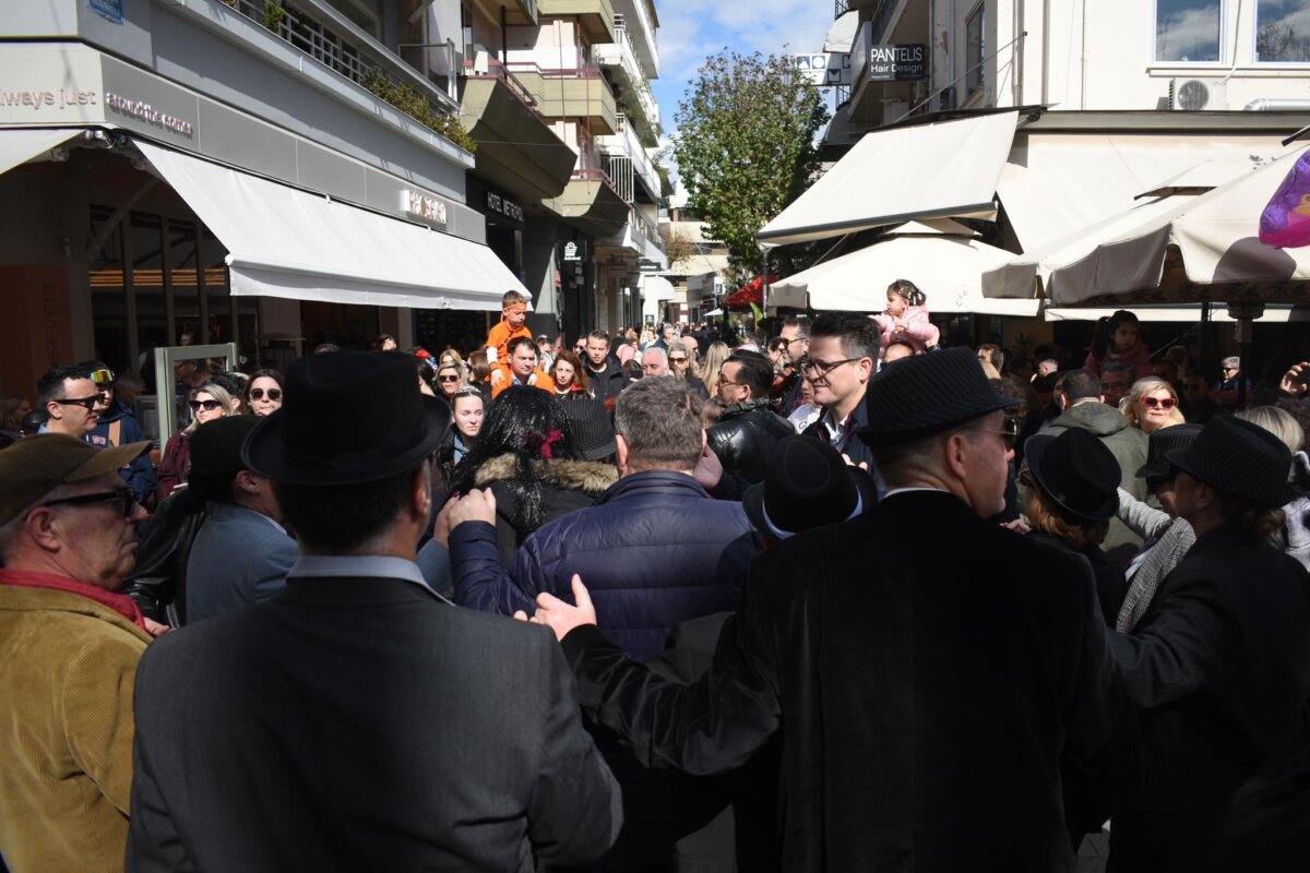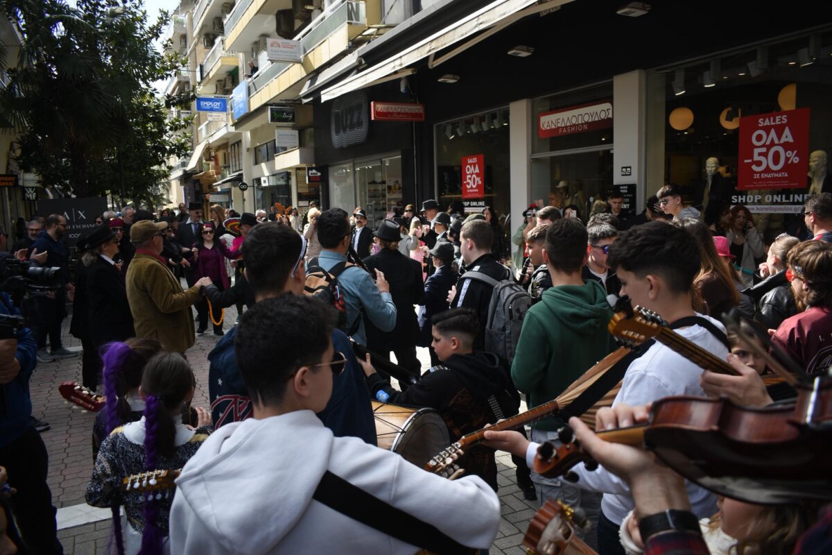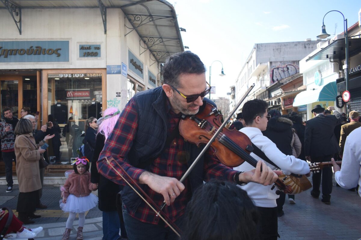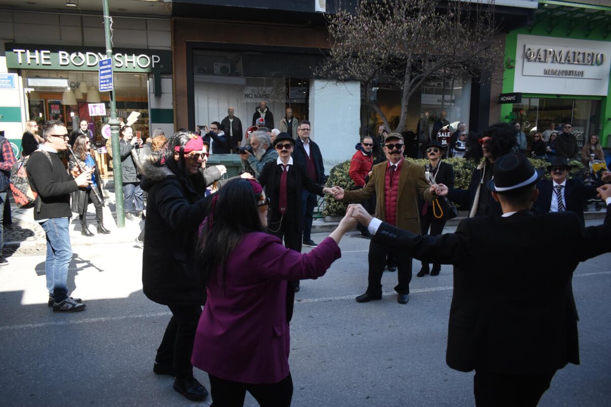 Η αρχή έγινε στις 11:30 π.μ., όταν «μπουλούκια» καρναβαλιστών με σημείο συνάντησης το Α’ Αρχαίο Θέατρο Λάρισας διέσχισαν το εμπορικό κέντρο, συνοδεία παραδοσιακών οργάνων. Με τραγούδια, αστεϊσμούς και πειράγματα ξεσήκωσαν μικρούς και μεγάλους, σκορπώντας κέφι και χαρά σε δρόμους και πεζοδρόμους.