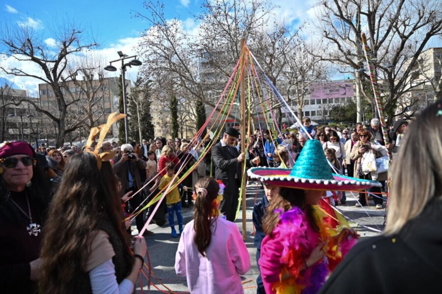 Το μεσημέρι στήθηκε το μεγάλο παραδοσιακό γλέντι στην Κεντρική Πλατεία με τον Γιάννη Λίταινα, ενώ αναβίωσαν έθιμα όπως το γαϊτανάκι, με τη συμμετοχή μικρών και μεγάλων.