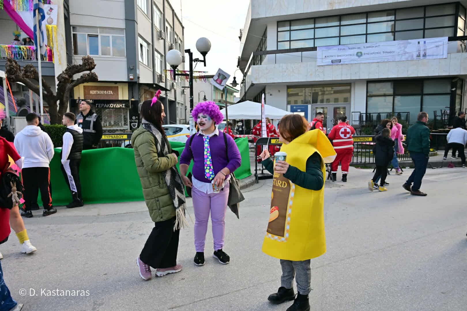 Ο κόσμος έχει ήδη ξεχυθεί στους δρόμους του Τυρνάβου, ντυμένος αποκριάτικα, σκορπίζοντας κέφι σε κάθε γωνιά της πόλης.