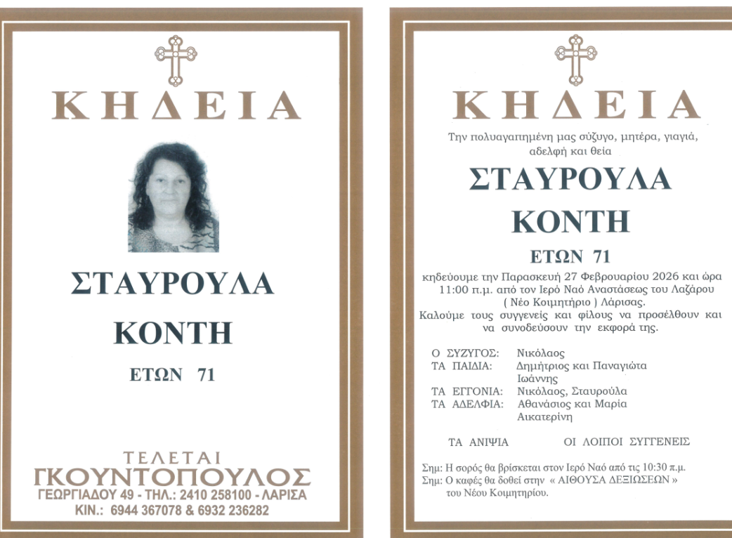 Λάρισα Σωματείο Ταξί Λάρισας: “3 χρόνια από το έγκλημα των Τεμπών-Δεν ξεχνάμε, διεκδικούμε δικαιοσύνη και ασφάλεια” 25/02/2026, 19:05