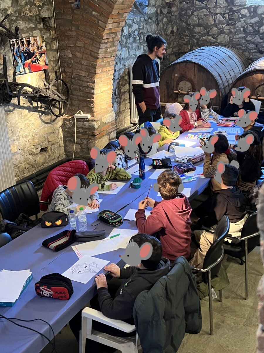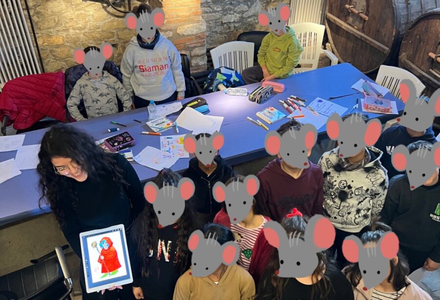 Με την καθοδήγηση του δημιουργού κόμικς Θάνου Κυρατζή και της σκιτσογράφου Δήμητρας Νικολαΐδη, μέλη του Loud Mouse Crew, τα παιδιά ζωγράφισαν μάσκες, δημιούργησαν φανταστικούς αποκριάτικους χαρακτήρες και εξέφρασαν ελεύθερα τη δημιουργικότητά τους. Οι ζωγραφιές τους ενώθηκαν ψηφιακά σε ένα μοναδικό συλλογικό κολλάζ, αποτυπώνοντας τη δύναμη της συνεργασίας και της κοινής φαντασίας.