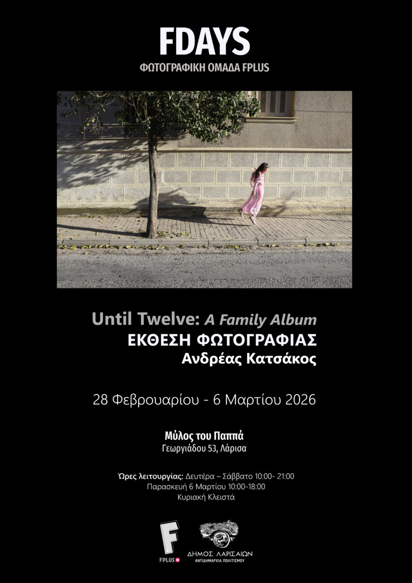 Η Φωτογραφική Ομάδα fplus σε συνεργασία με την Αντιδημαρχία Πολιτισμού του Δήμου Λαρισαίων παρουσιάζουν, στο πλαίσιο της δράσης FDAYS, την έκθεση φωτογραφίας του Ανδρέα Κατσάκου με τίτλο: UntilTwelve: A FamilyAlbum
