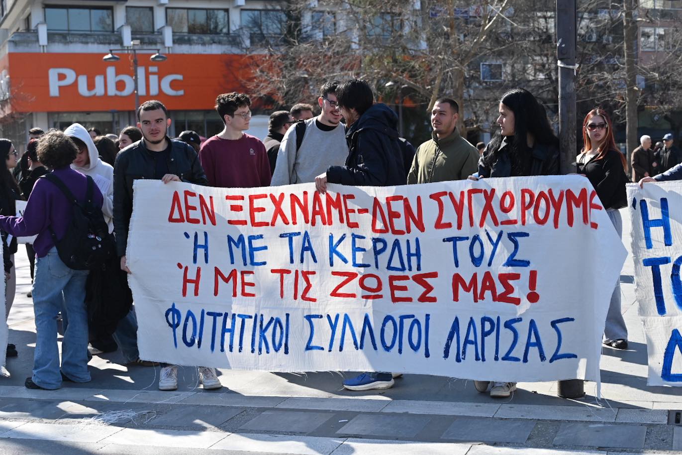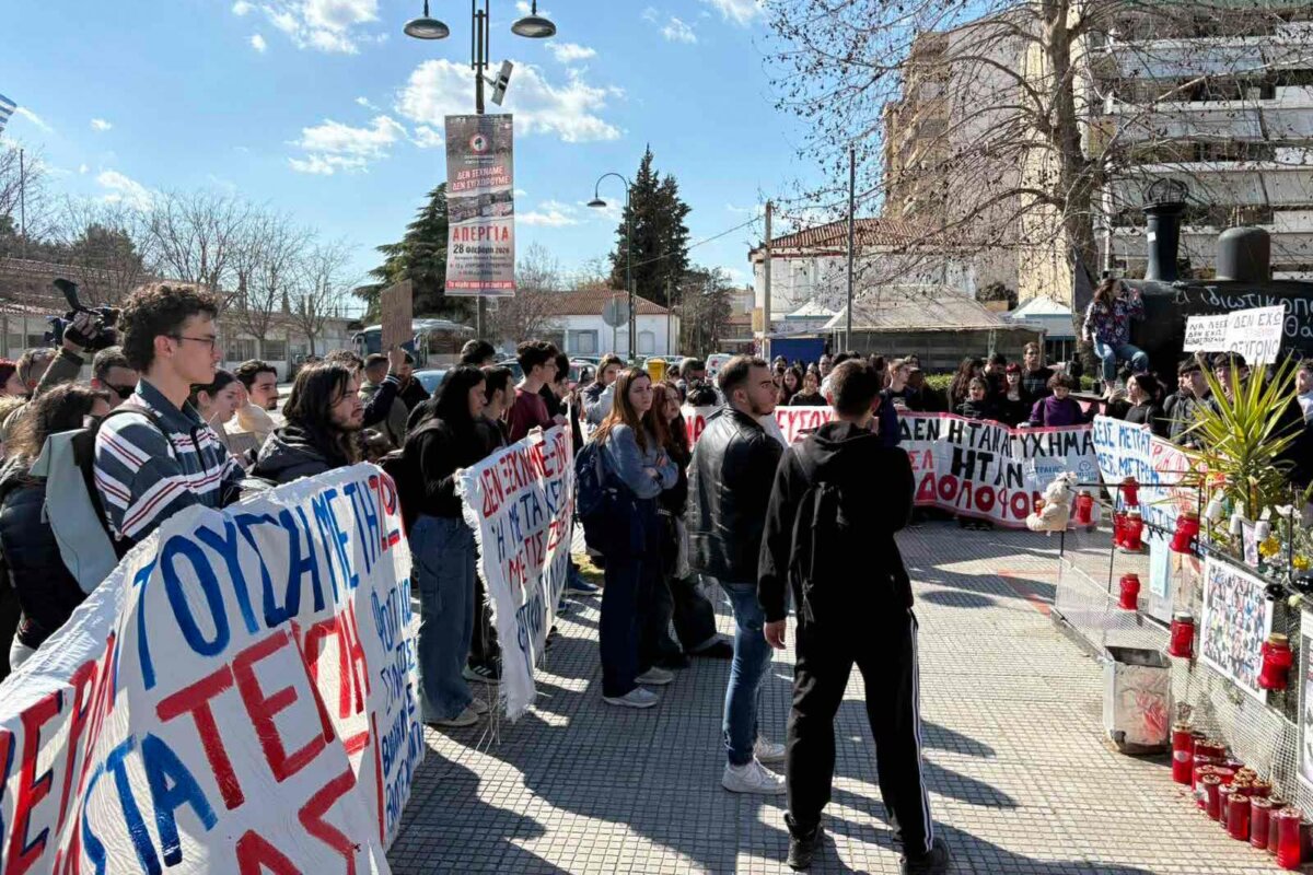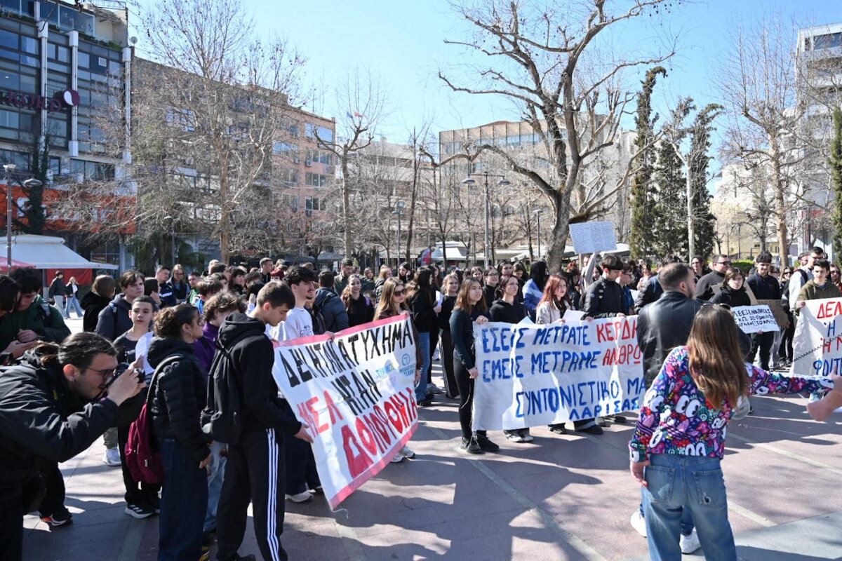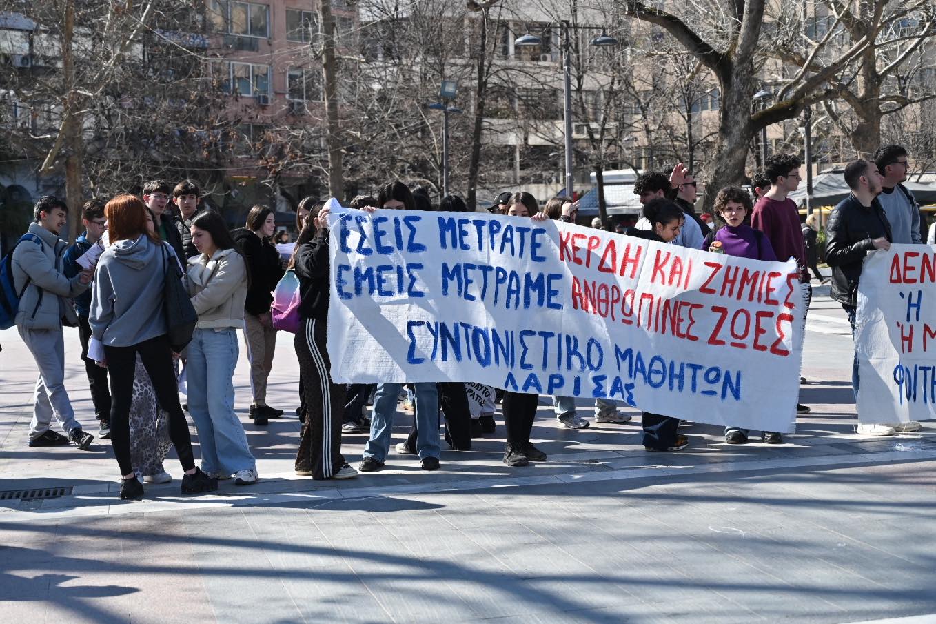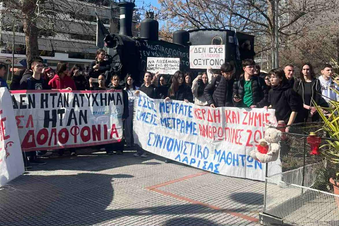 Μαθητικοί και φοιτητικοί σύλλογοι προχώρησαν σήμερα σε συγκέντρωση διαμαρτυρίας και πορεία στους κεντρικούς δρόμους της Λάρισας, με αφορμή τη συμπλήρωση τριών χρόνων από το έγκλημα των Τέμπη, το ερχόμενο Σάββατο.