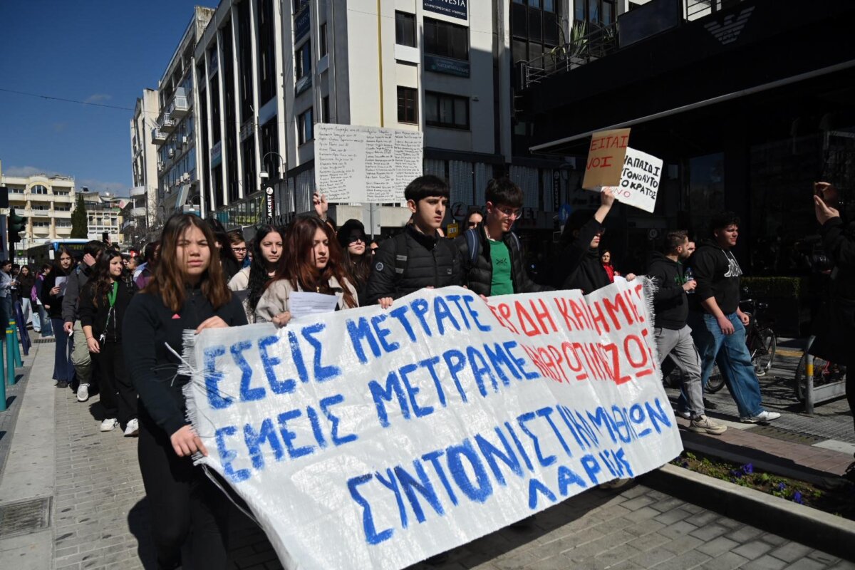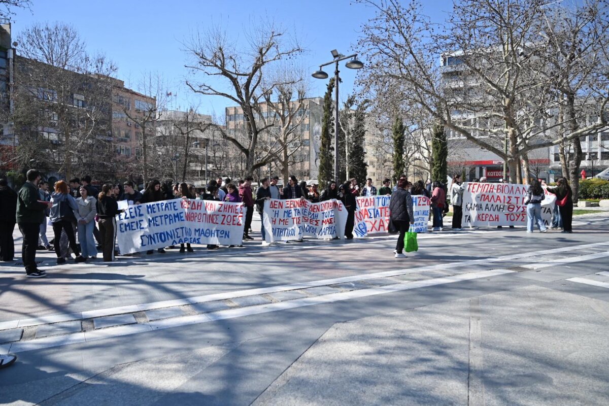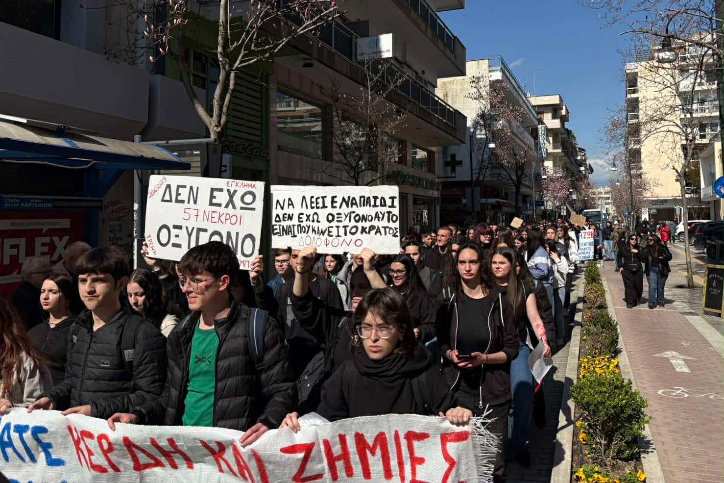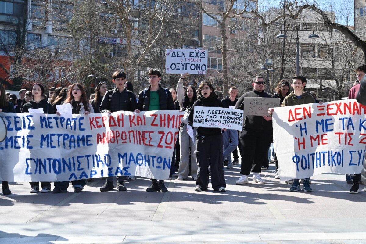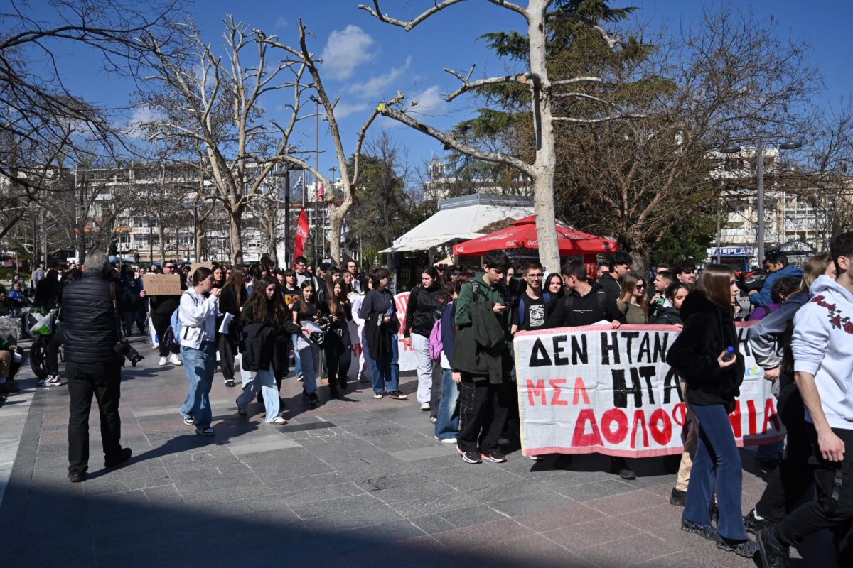 Μαθητικοί και φοιτητικοί σύλλογοι προχώρησαν σήμερα σε συγκέντρωση διαμαρτυρίας και πορεία στους κεντρικούς δρόμους της Λάρισας, με αφορμή τη συμπλήρωση τριών χρόνων από το έγκλημα των Τέμπη, το ερχόμενο Σάββατο.