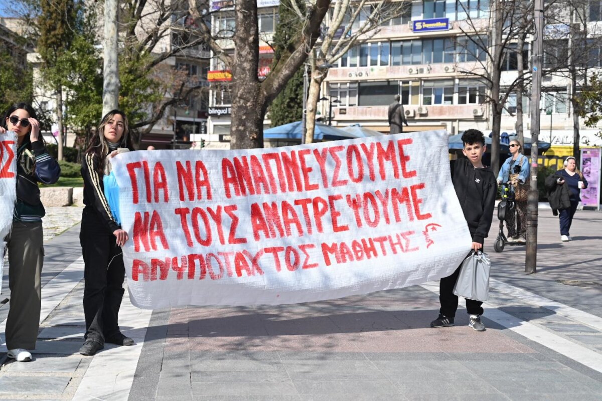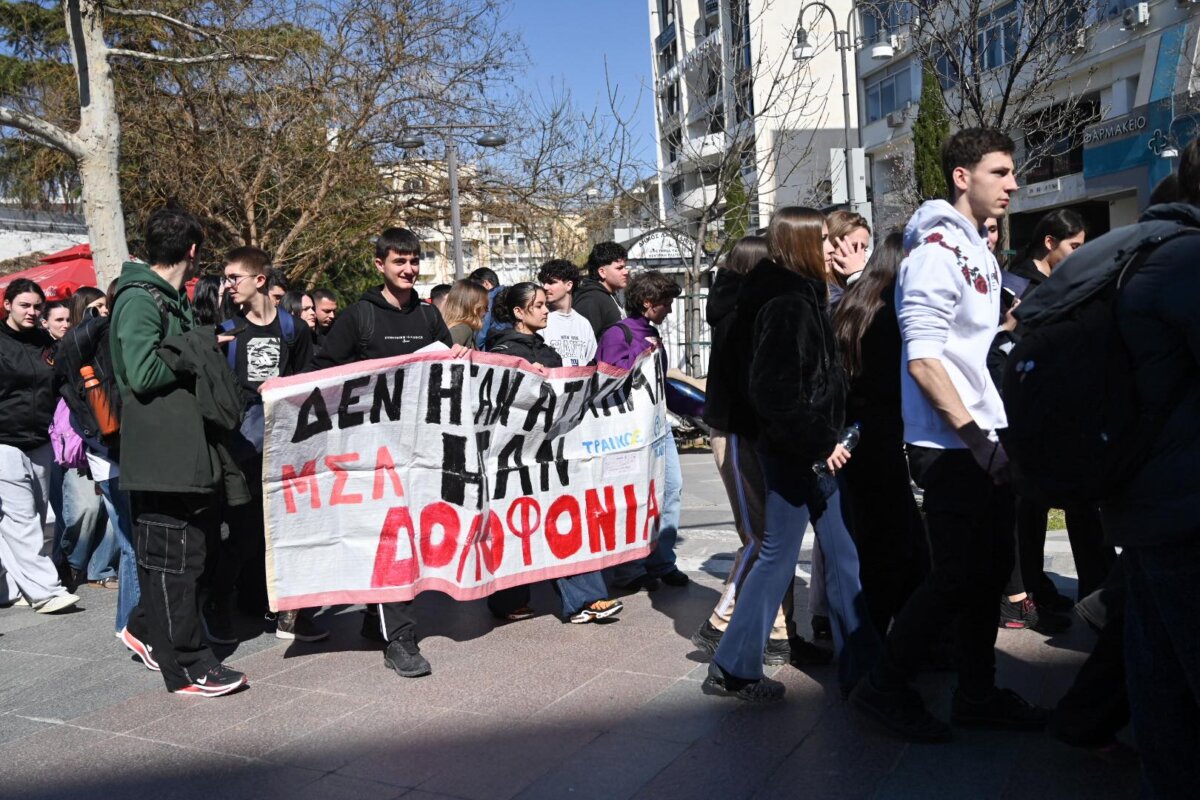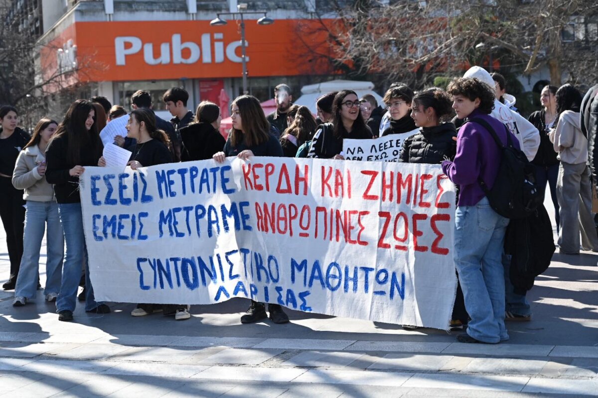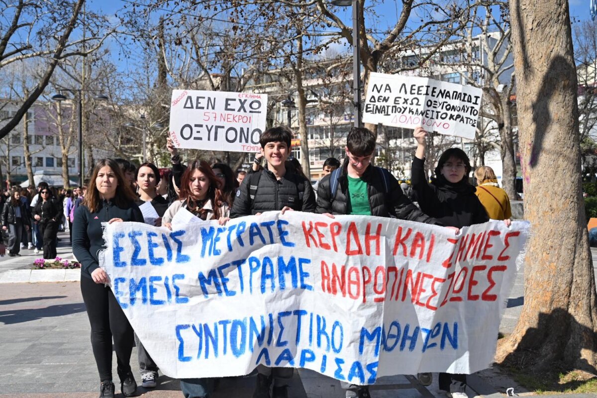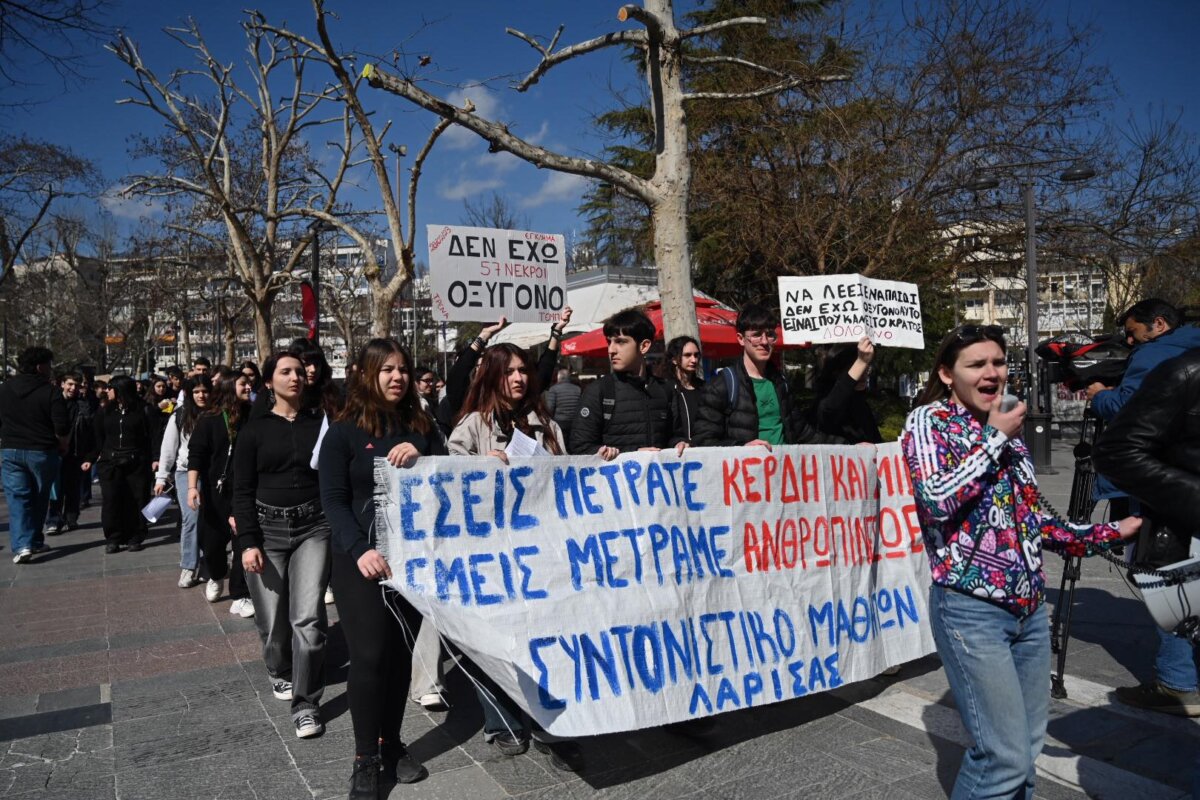 Μαθητικοί και φοιτητικοί σύλλογοι προχώρησαν σήμερα σε συγκέντρωση διαμαρτυρίας και πορεία στους κεντρικούς δρόμους της Λάρισας, με αφορμή τη συμπλήρωση τριών χρόνων από το έγκλημα των Τέμπη, το ερχόμενο Σάββατο.