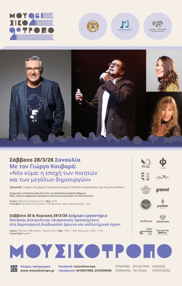 - 28 Μαρτίου 2026, Συναυλία – Με τον Γιώργο Κουβαρά: «Νέο κύμα: η εποχή των ποιητών και των μεγάλων δημιουργών»