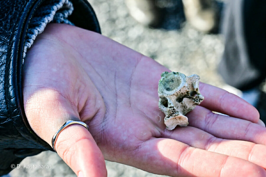 Σύμφωνα με όσα ανέφερε, ενώ βρισκόταν στο σημείο και ερευνούσε το έδαφος, βρήκε οστό που εκτιμά πως ενδέχεται να πρόκειται για τρίτο ή τέταρτο σπόνδυλο, καθώς —όπως σημείωσε— οι συγκεκριμένοι σπόνδυλοι είναι μικρού μεγέθους.