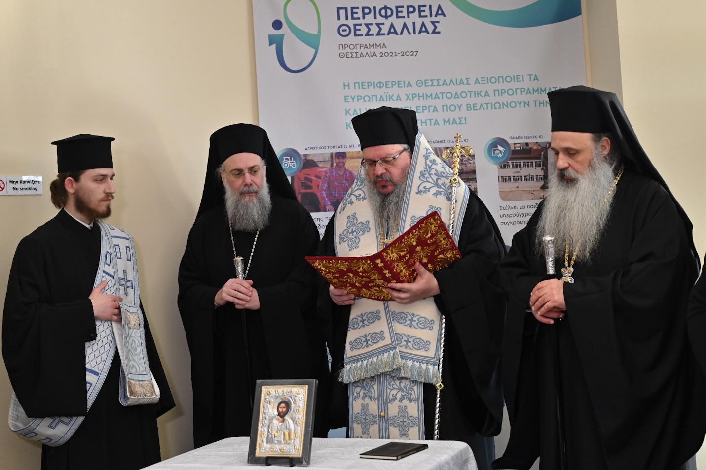 Κατά την έναρξη της τακτικής συνεδρίασης του Περιφερειακού Συμβουλίου Θεσσαλίας τελέστηκε τρισάγιο στη μνήμη των θυμάτων των Τεμπών και του εργοστασίου «Βιολάντα» από τους Σεβ. Μητροπολίτες Λαρίσης και Τυρνάβου κ.κ. Ιερώνυμο, Τρίκκης, Γαρδικίου και Πύλης Χρυσόστομο και Σταγών και Μετεώρων Θεόκλητο.