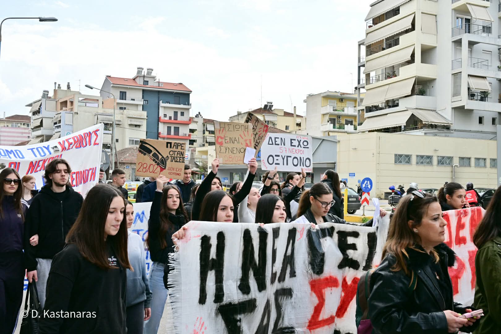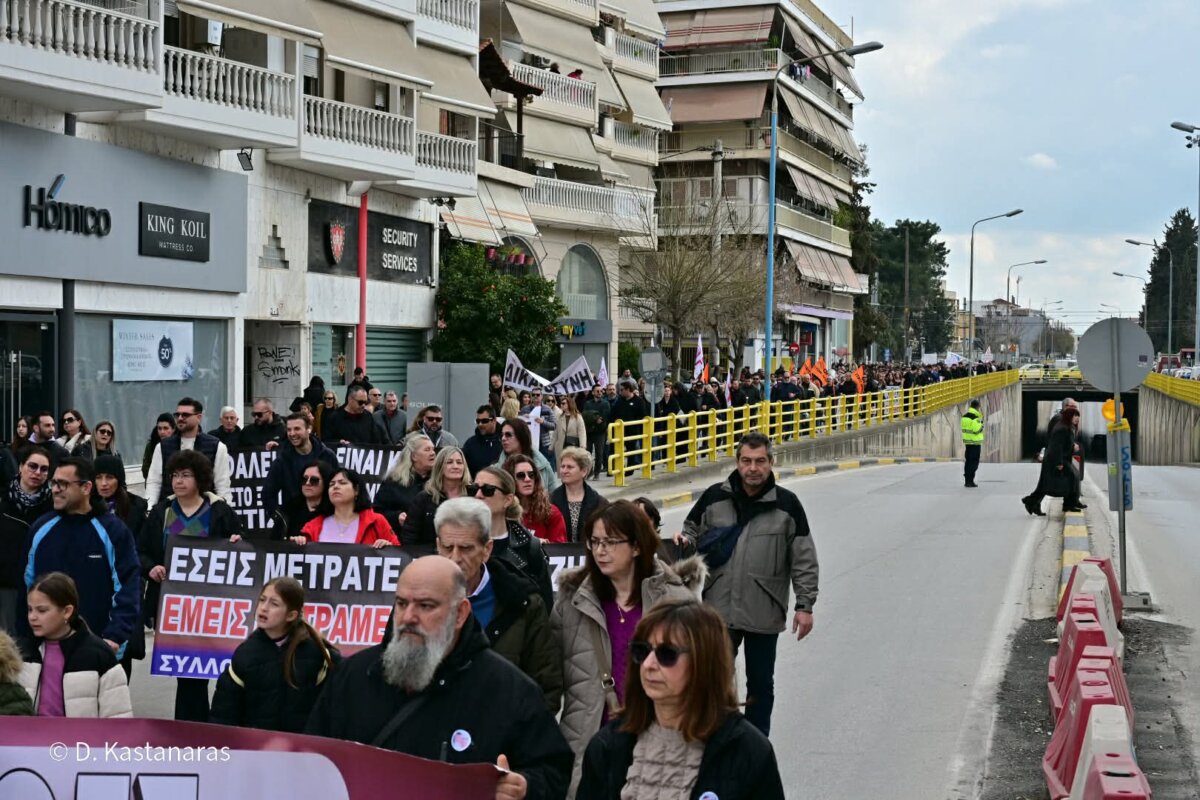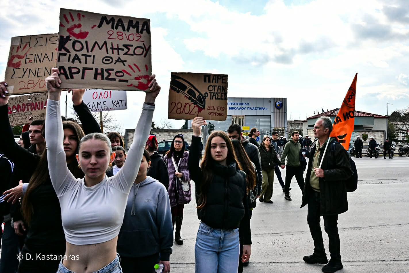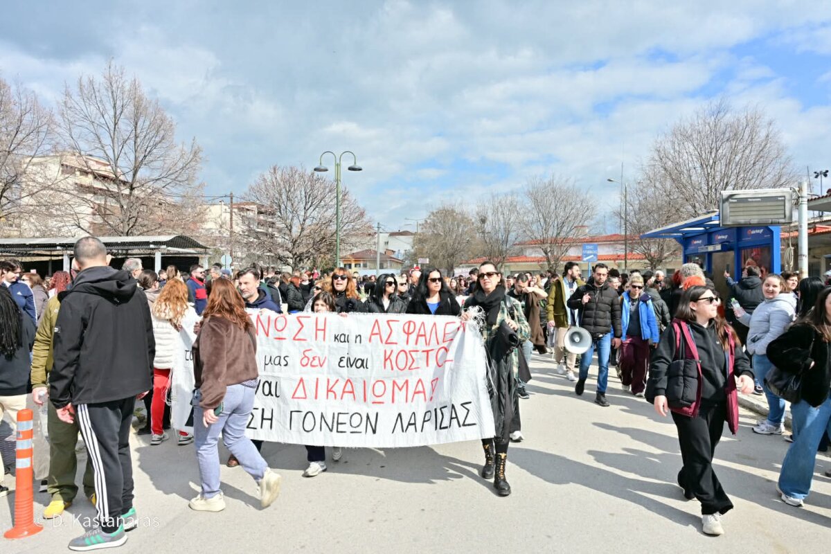 Μεγαλειώδης πορεία πραγματοποιήθηκε στη Λάρισα, με αφορμή τη μαύρη επέτειο της τραγωδίας των Τεμπών.