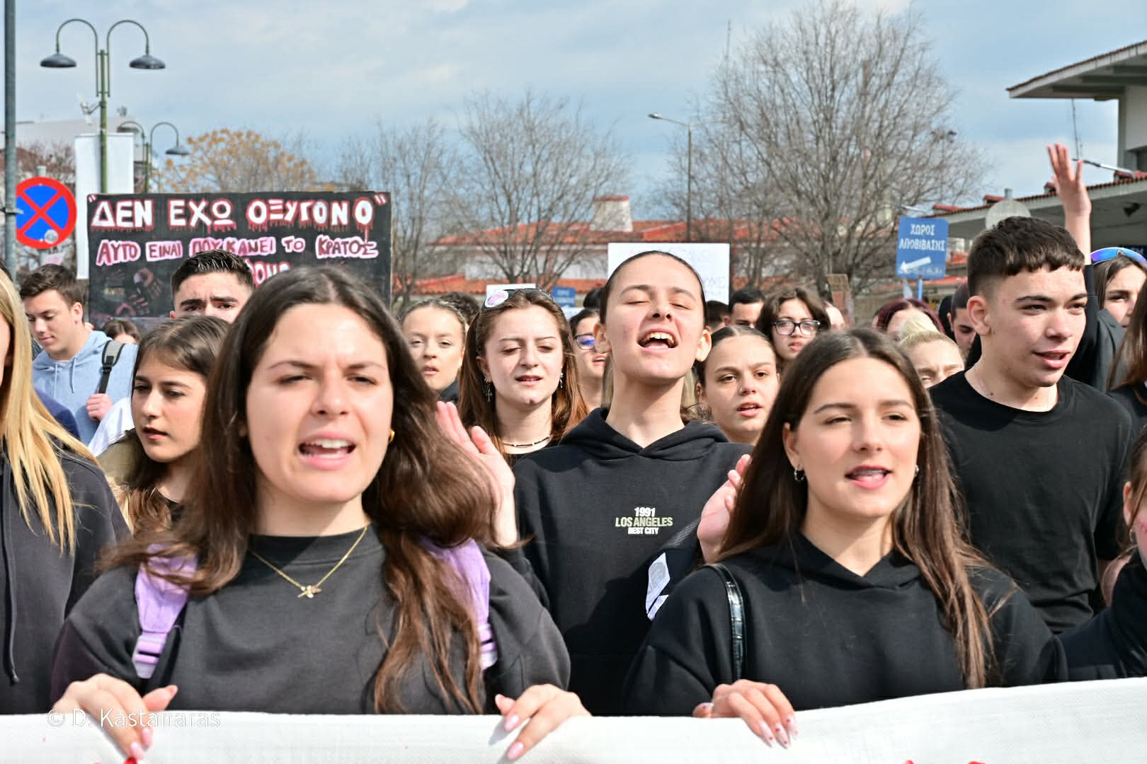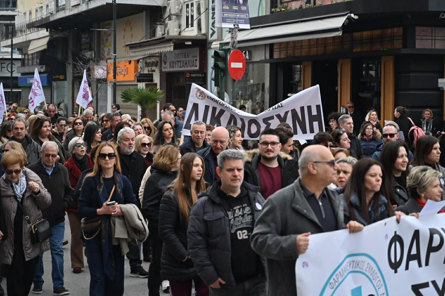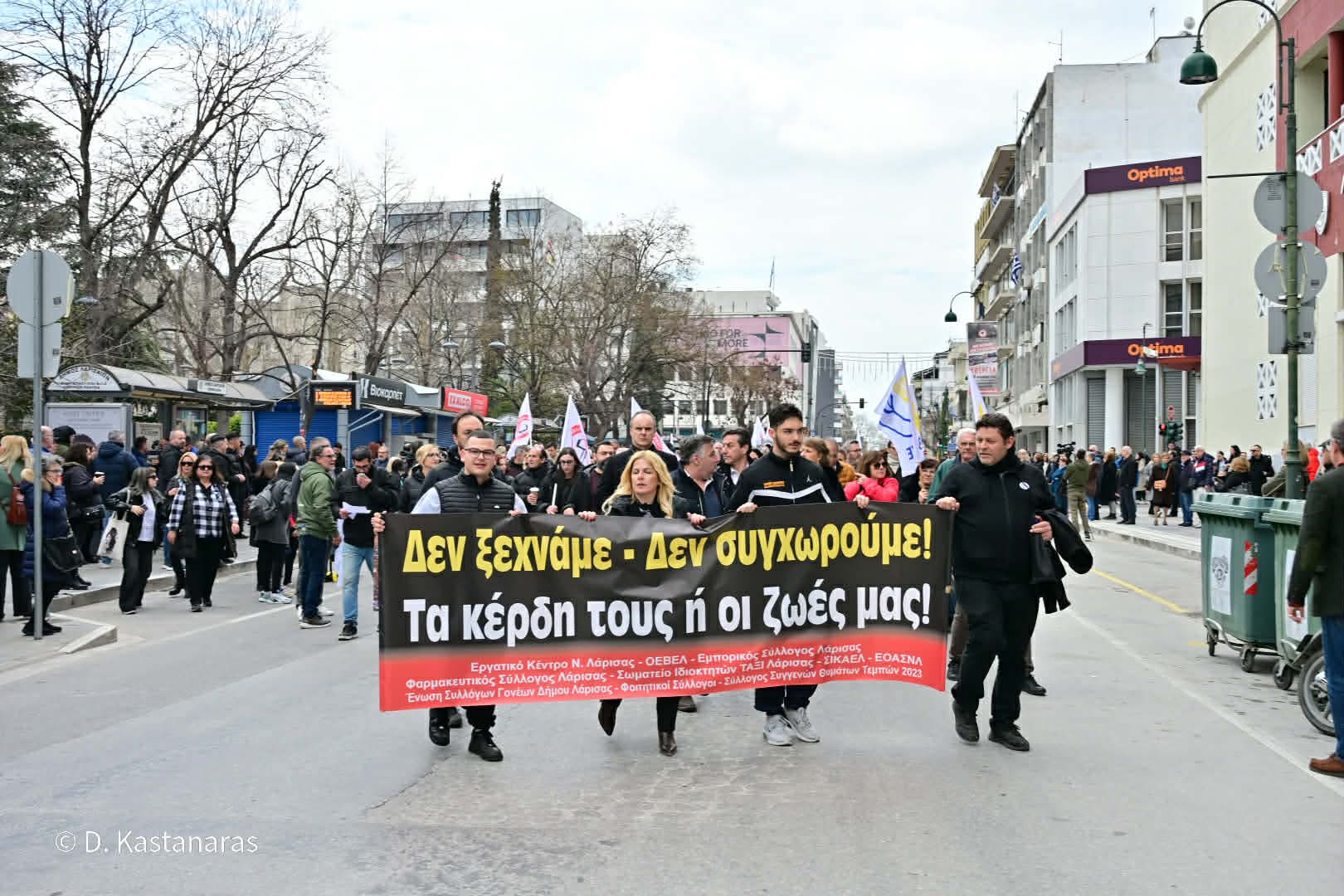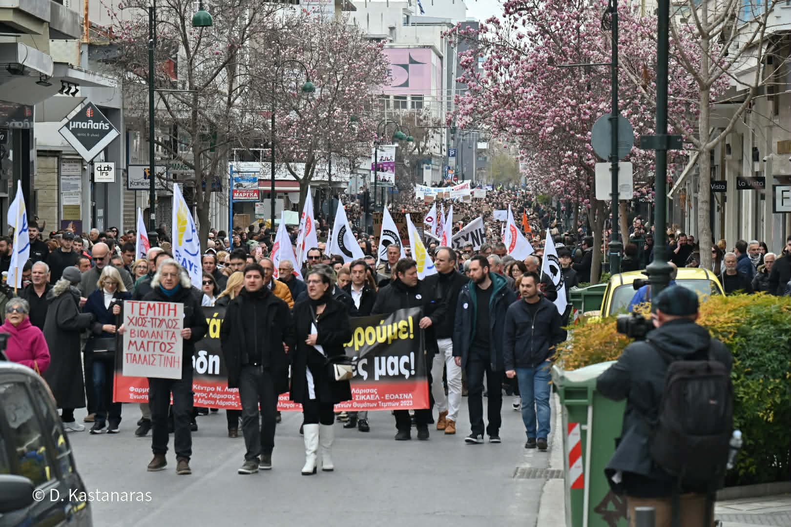 Μεγαλειώδης πορεία πραγματοποιήθηκε στη Λάρισα, με αφορμή τη μαύρη επέτειο της τραγωδίας των Τεμπών.