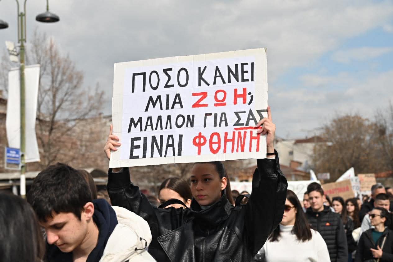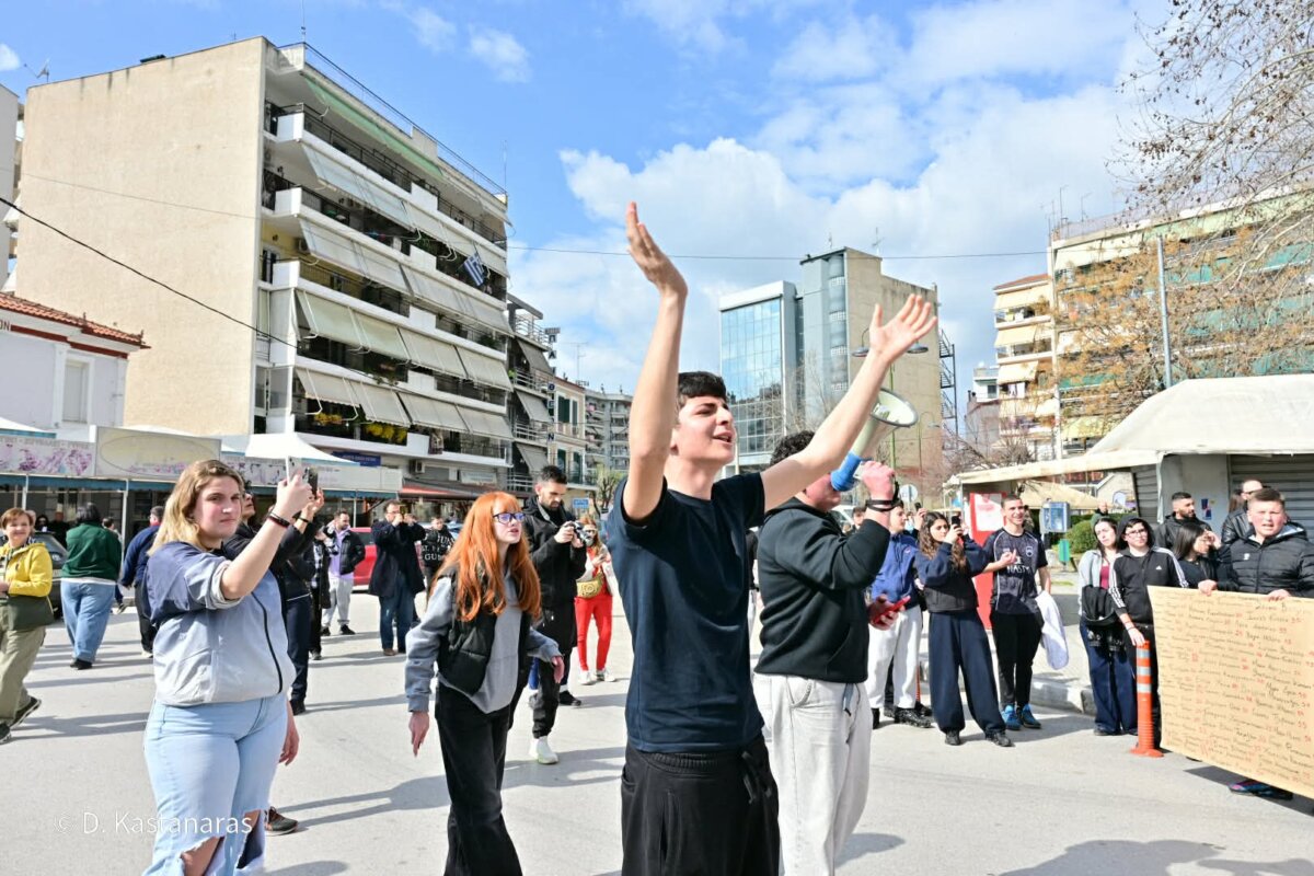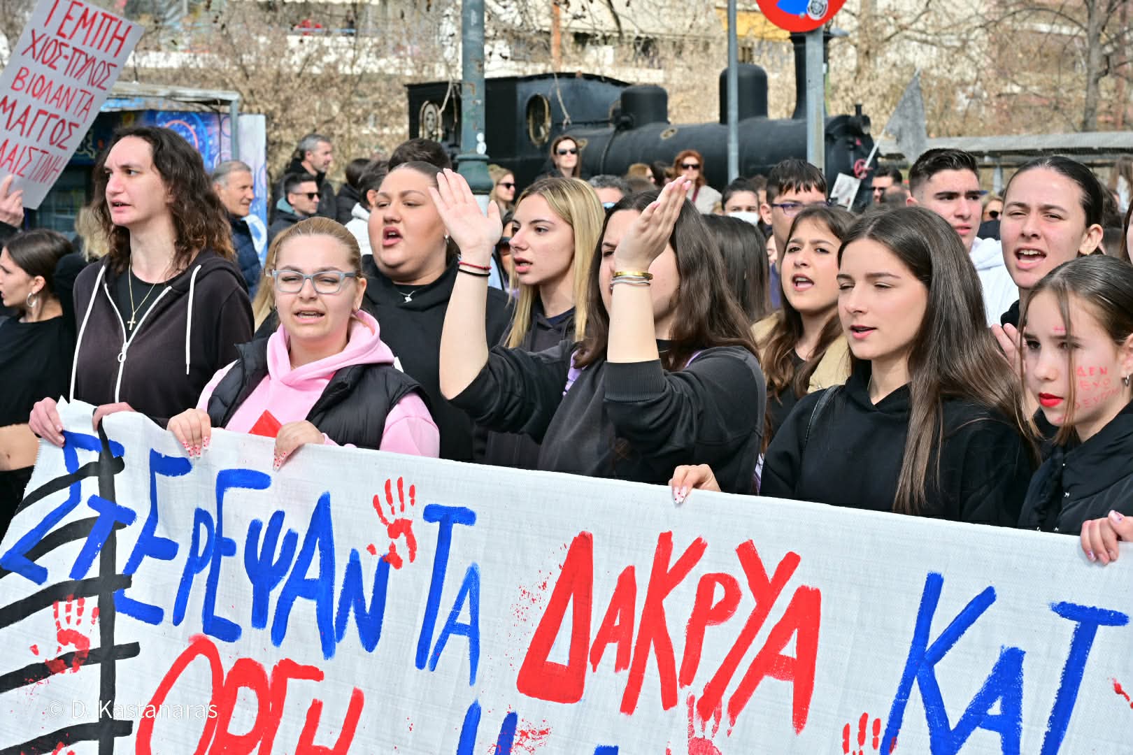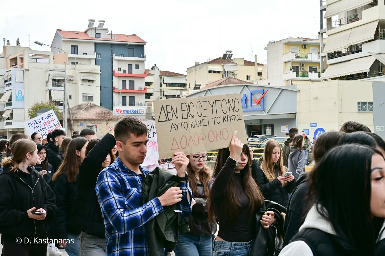 Μεγαλειώδης πορεία πραγματοποιήθηκε στη Λάρισα, με αφορμή τη μαύρη επέτειο της τραγωδίας των Τεμπών.