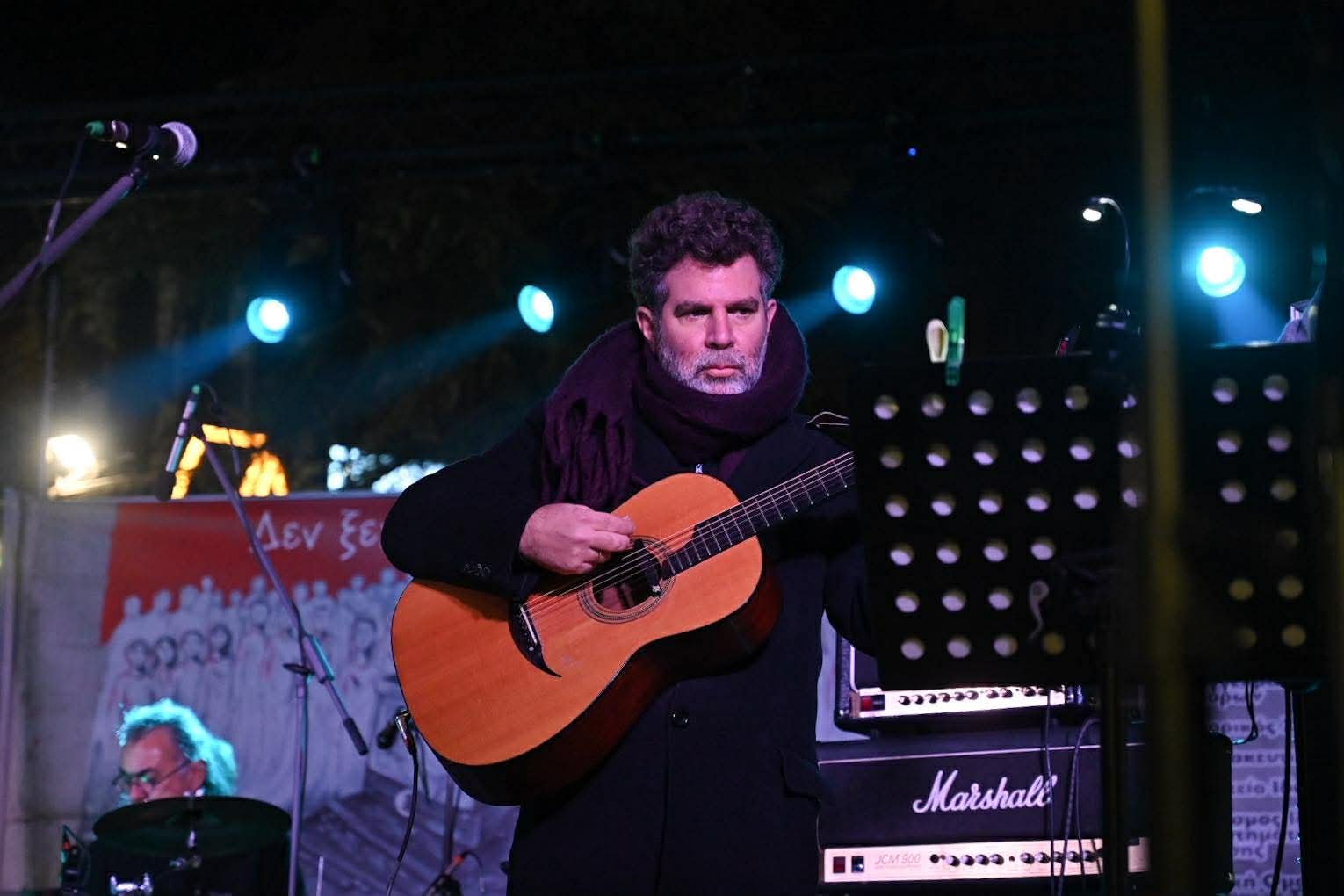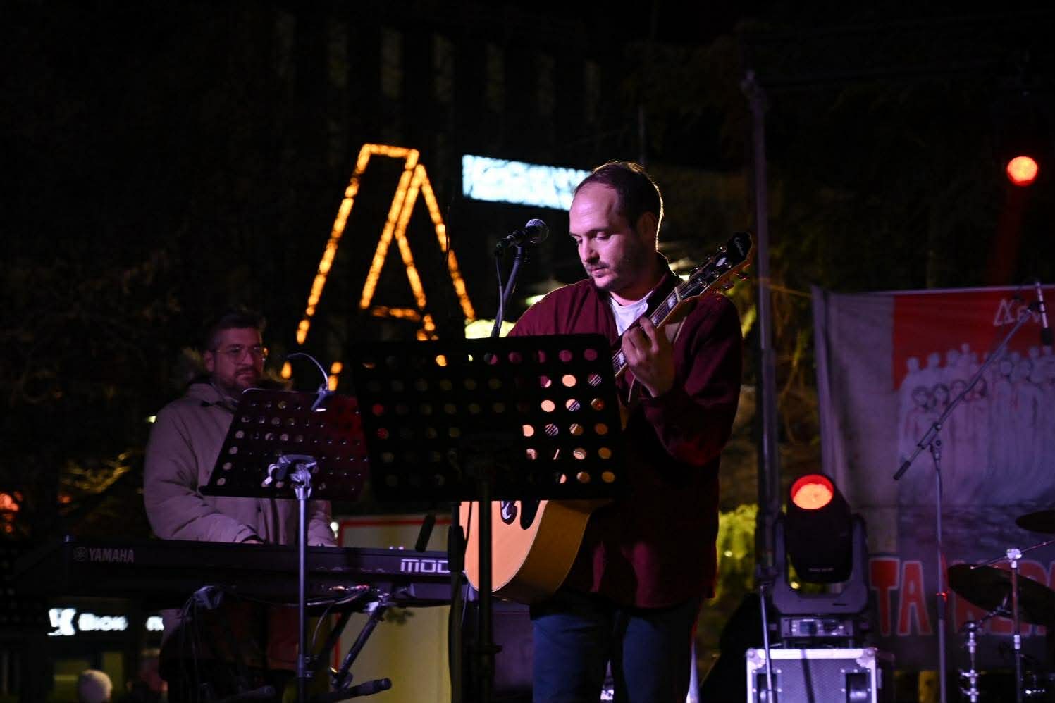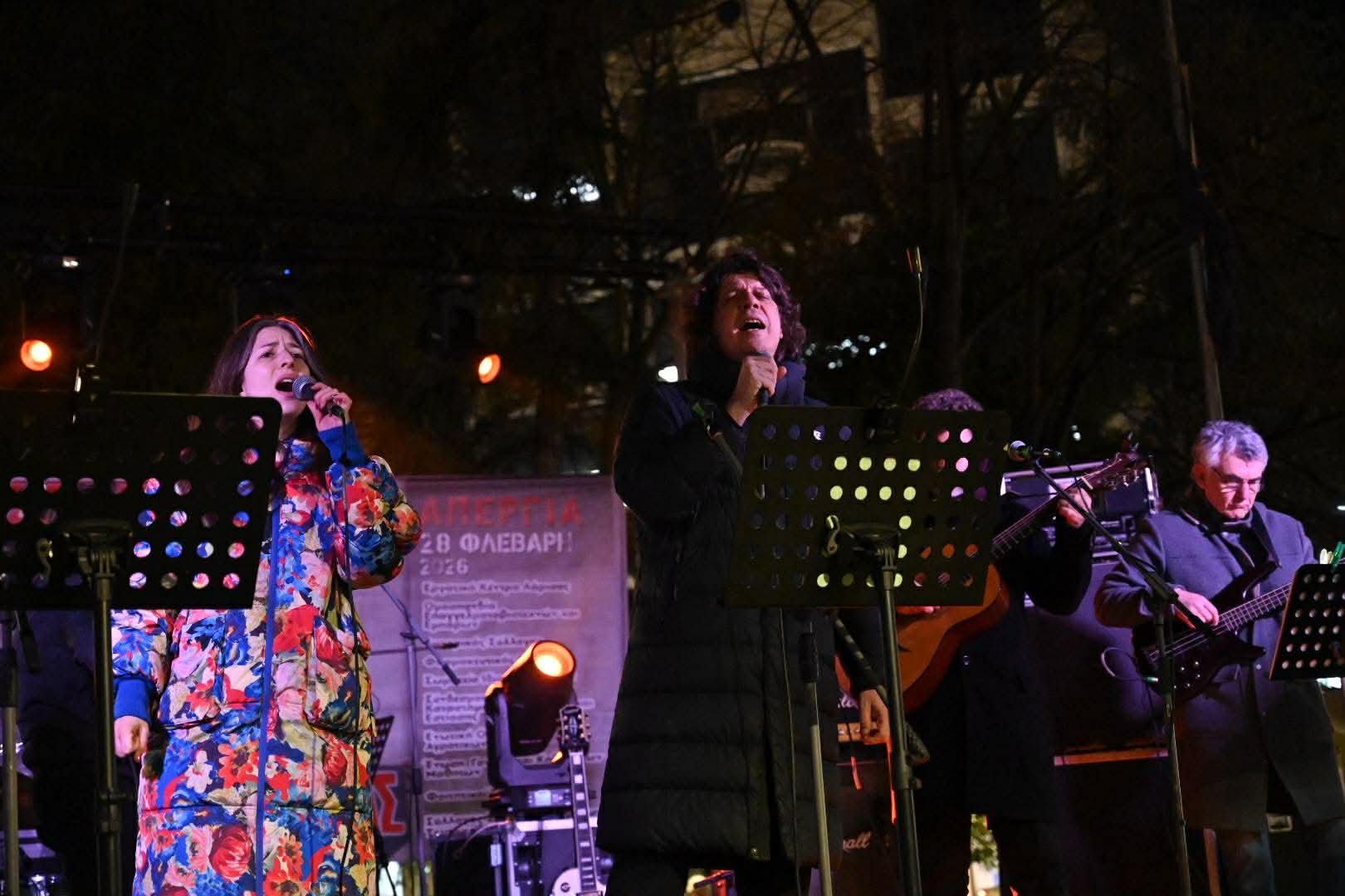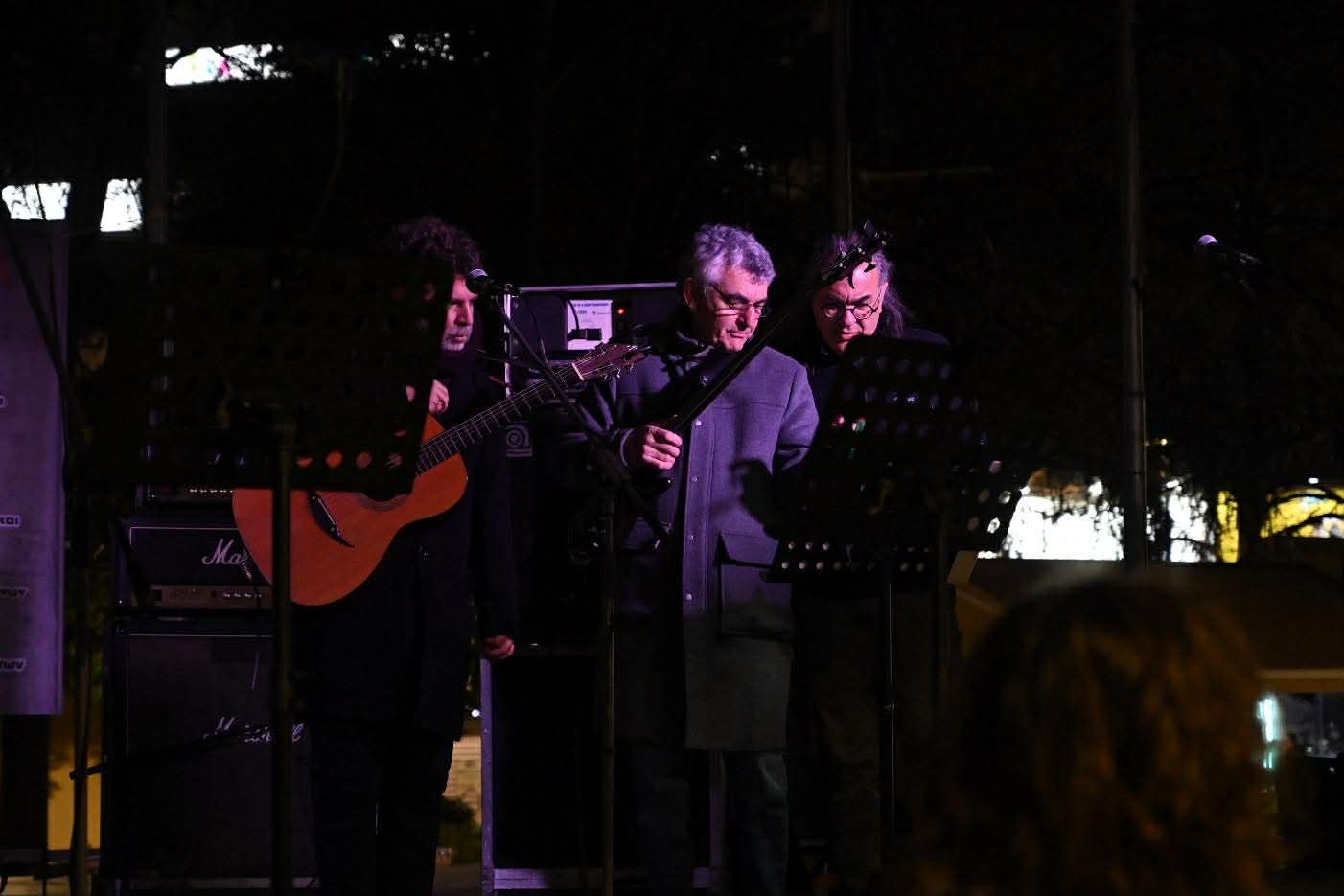 Στην Κεντρική Πλατεία Λάρισας πραγματοποιήθηκε απόψε συναυλία με αφορμή τη συμπλήρωση τριών ετών από την τραγωδία των Τεμπών.