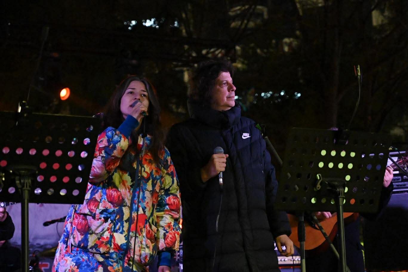 Στη σκηνή ανέβηκαν μουσικά σχήματα και καλλιτέχνες από τη Λάρισα, οι οποίοι ένωσαν τις φωνές τους, στέλνοντας μήνυμα δικαιοσύνης για τα θύματα της σιδηροδρομικής τραγωδίας.