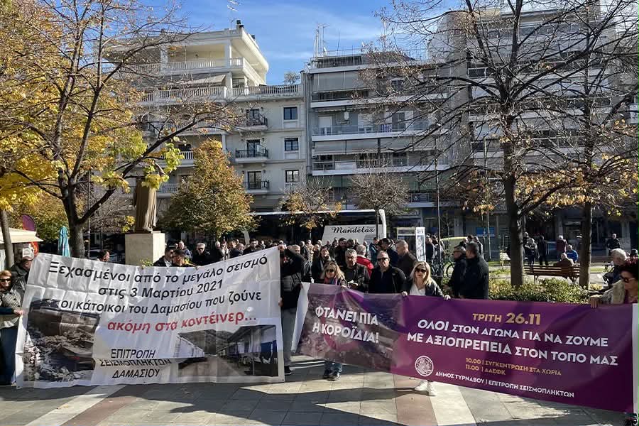 Στα παραπάνω προστίθεται και το ζήτημα των οικίσκων. Αντί να διασφαλίζεται η παραμονή τους μέχρι την οριστική αποκατάσταση όλων των κατοικιών, διαμορφώνεται το έδαφος για την απομάκρυνσή τους από το Δαμάσι, ενώ υπάρχουν ακόμη οικογένειες που δεν έχουν πού να επιστρέψουν. Οι πρόσφατες διώξεις αιρετών για τη διάθεση οικίσκων σε σεισμόπληκτους δείχνουν μια επικίνδυνη κατεύθυνση: αντί να επιταχυνθεί η αποκατάσταση, στοχοποιούνται εκείνοι που, σε συνθήκες έκτακτης ανάγκης, έδρασαν για να μη μείνει κανείς χωρίς στέγη.