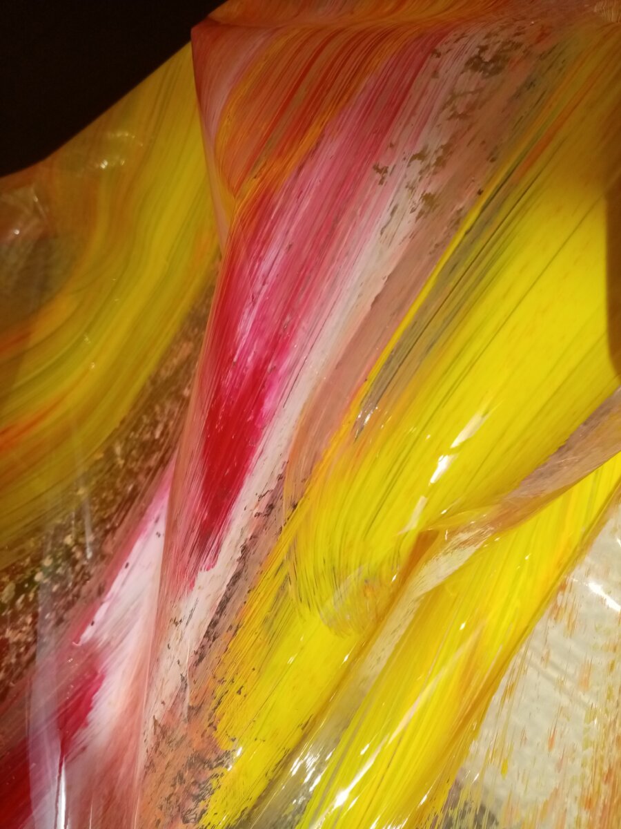 Τα χρώματα και τα αποτυπώματα ίχνους γίνονται ορατά χάρη της δικής τους δυνατότητας να φανερώνονται, να υπακούν στη δική τους λογική και αναγκαιότητα, γίνονται διάσταση για χάρη του εαυτού τους. Καλούν το θεατή να τα παρατηρήσει.