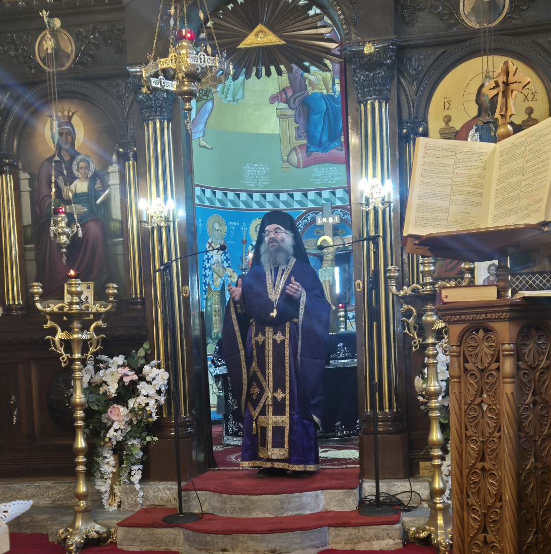 Το απόγευμα τελέστηκε ο Πανηγυρικός Εσπερινός μετ’ αρτοκλασίας, χοροστατούντος του Σεβασμιωτάτου Μητροπολίτη Λαρίσης και Τυρνάβου κ. Ιερώνυμου.