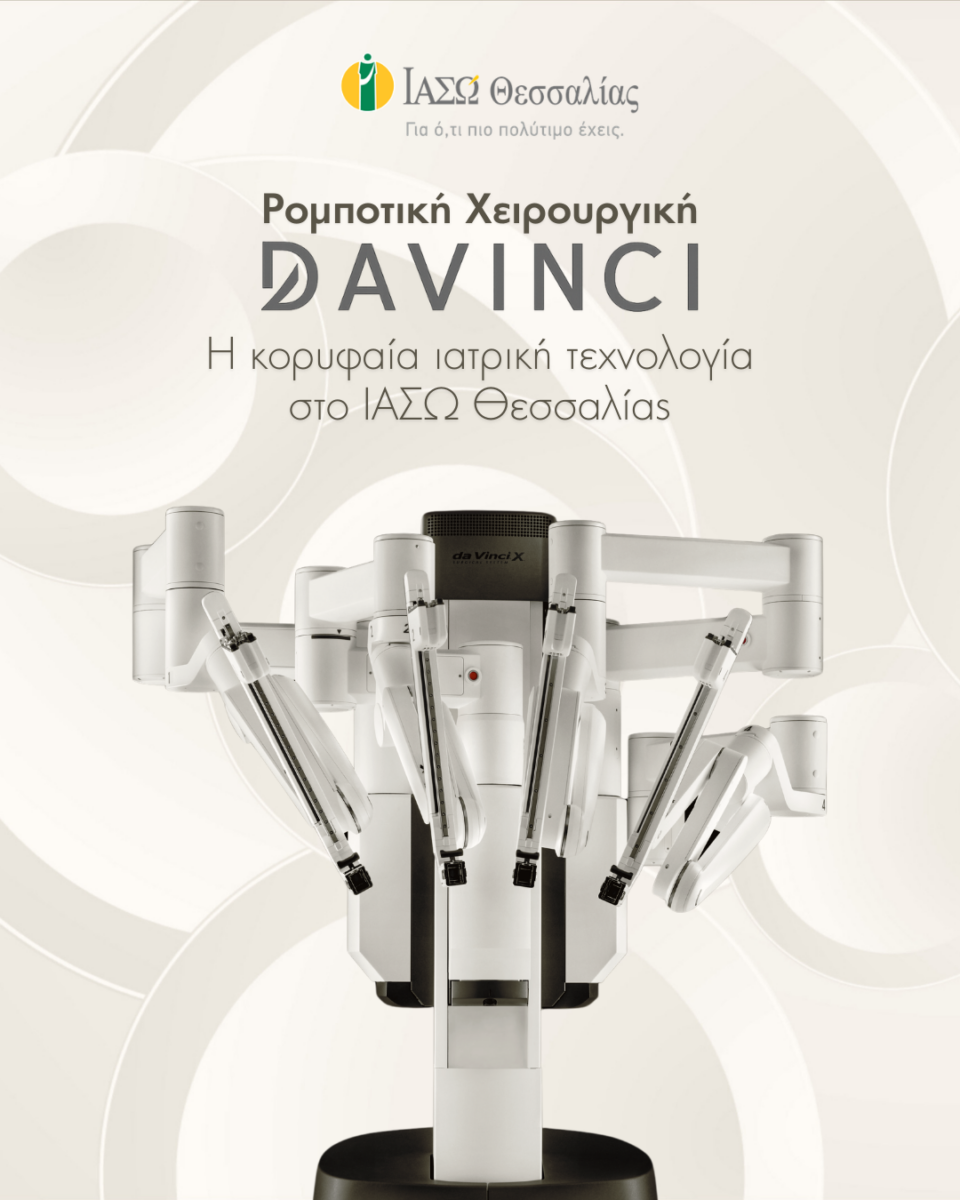 Το ΙΑΣΩ Θεσσαλίας ενισχύει περαιτέρω το επίπεδο των παρεχόμενων υπηρεσιών υγείας με την εγκατάσταση του ρομποτικού συστήματος χειρουργικής Da Vinci, επενδύοντας συστηματικά στα πιο προηγμένα τεχνολογικά συστήματα και σε σύγχρονες ιατρικές πρακτικές. Η ένταξη του ρομποτικού συστήματος χειρουργικής Da Vinci πραγματοποιείται στο μοναδικό ιδιωτικό νοσοκομείο της Κεντρικής Ελλάδας, σε ένα πλήρως οργανωμένο νοσοκομειακό περιβάλλον, με σύγχρονες χειρουργικές αίθουσες, εξειδικευμένη αναισθησιολογική και νοσηλευτική υποστήριξη, Μονάδες Εντατικής Θεραπείας και ολοκληρωμένες διαγνωστικές υποδομές.