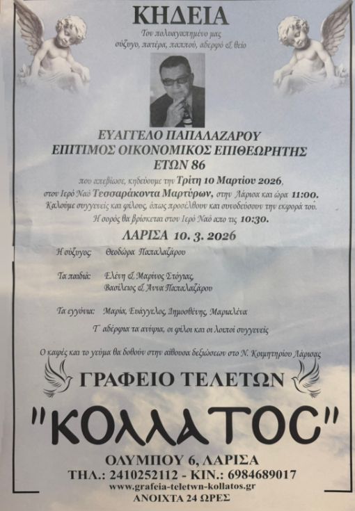 Έφυγε σε ηλικία 86 ετών ο επίτιμος Οικονομικός Επιθεωρητής Ευάγγελος Παπαλαζάρου.