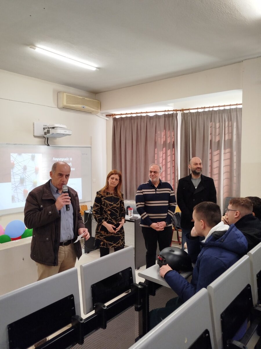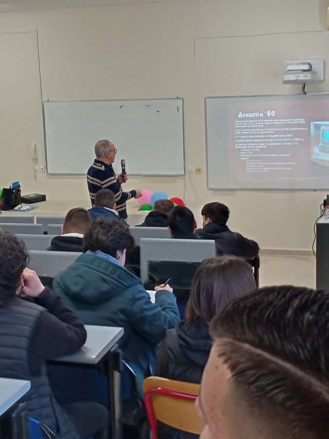 Τη Δευτέρα 9 Μαρτίου 2026 και ώρα 10:00 π.μ., πραγματοποιήθηκε στο 7ο ΕΠΑ.Λ. Λάρισας ενημερωτική ομιλία με τίτλο «Λογισμικό: Η ατμομηχανή του σύγχρονου κόσμου», η οποία απευθυνόταν σε μαθητές των τμημάτων της Β΄ και Γ΄ τάξης του Τομέα Πληροφορικής.