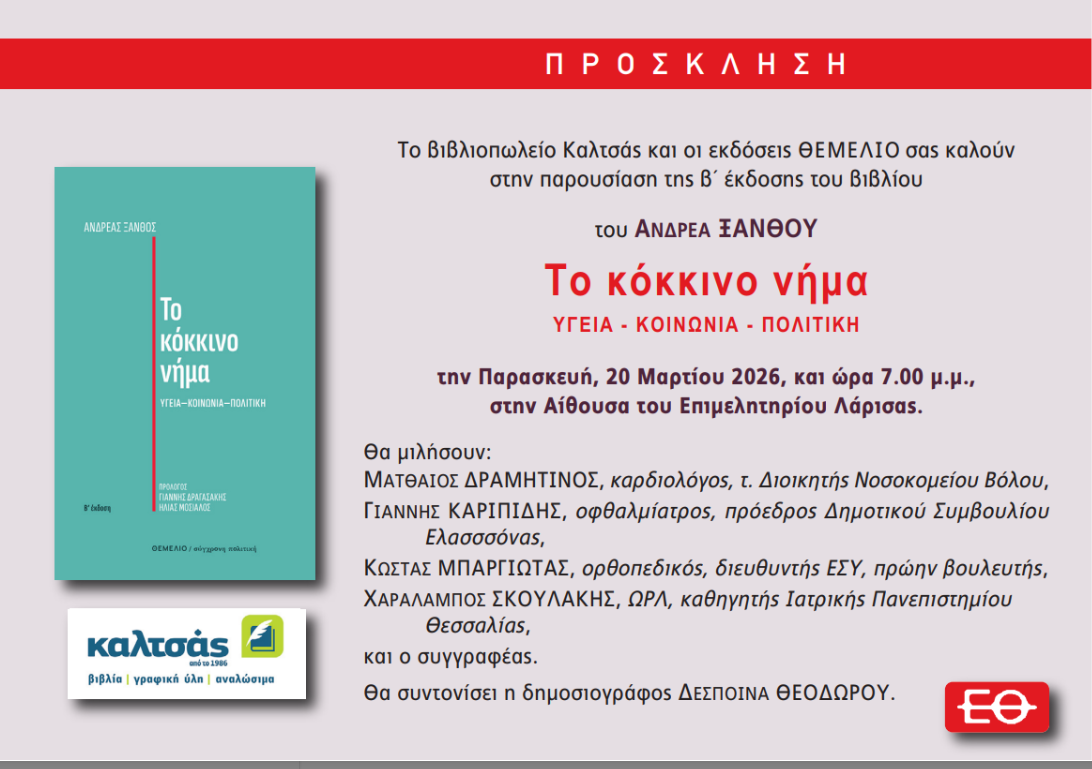 Παρουσιάζεται στη Λάρισα το βιβλίο του Ανδρέα Ξανθού το “Κόκκινο Νήμα”.