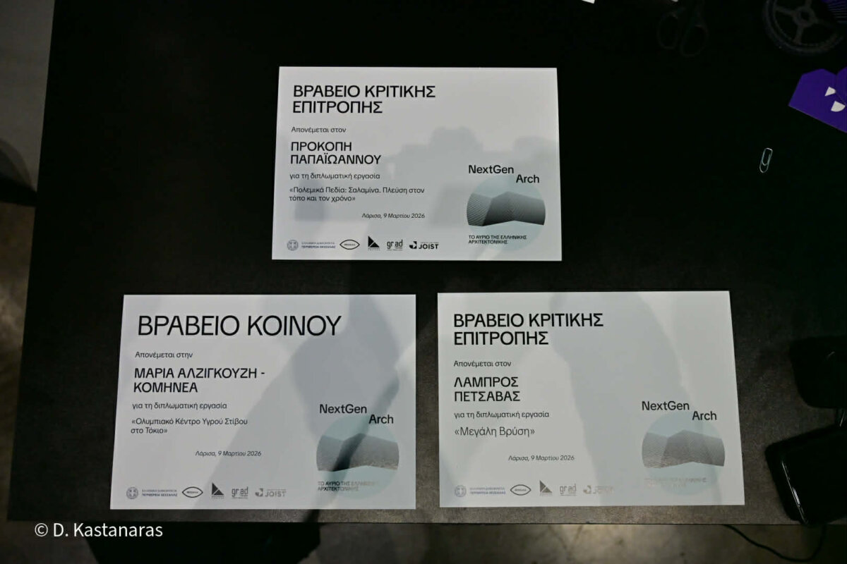 Η Περιφέρεια Θεσσαλίας διοργάνωσε την Τελετή Απονομής των Βραβείων της πρωτοβουλίας «NextGen Arch: Το αύριο της ελληνικής αρχιτεκτονικής», η οποία πραγματοποιήθηκε στο Πάρκο Καινοτομίας JOIST στη Λάρισα.