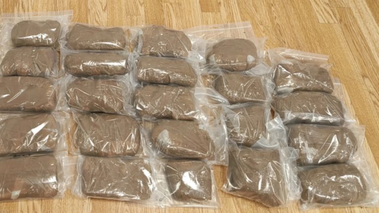 46 νάιλον συσκευασίες με ηρωίνη, συνολικού μικτού βάρους 13 κιλών και 584 γραμμαρίων.