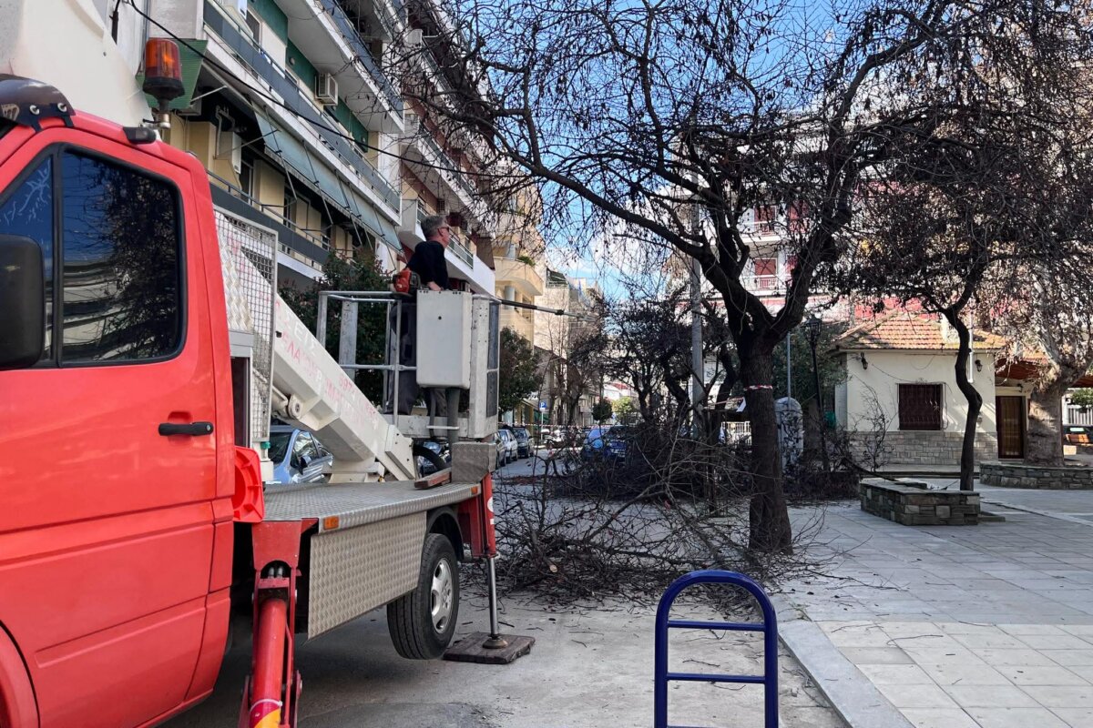 Ο Δήμος Λαρισαίων πραγματοποιεί εργασίες κλαδέματος σε κεντρικά σημεία της πόλης, στο πλαίσιο των τακτικών παρεμβάσεων για τη συντήρηση και την ασφάλεια του αστικού πρασίνου.