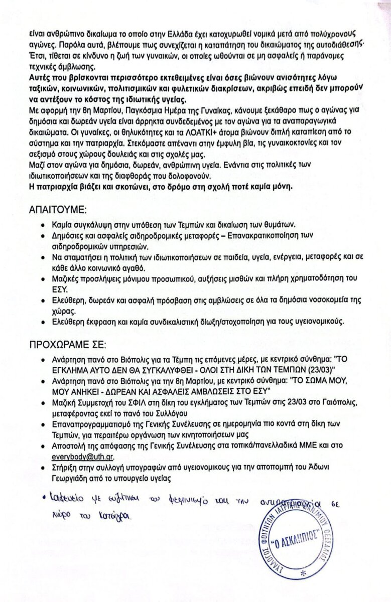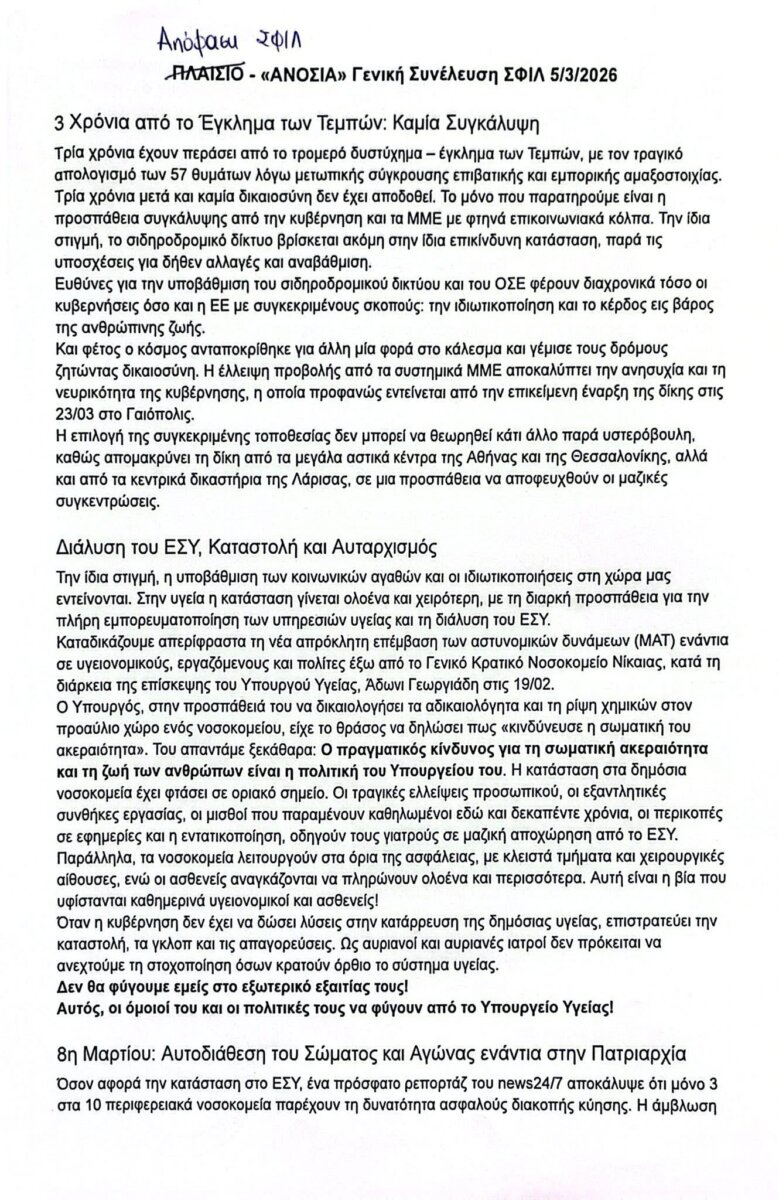 Επισυνάπτεται η απόφαση της Γενικής Συνέλευσης του Συλλόγου Φοιτητών Ιατρικής Λάρισας: