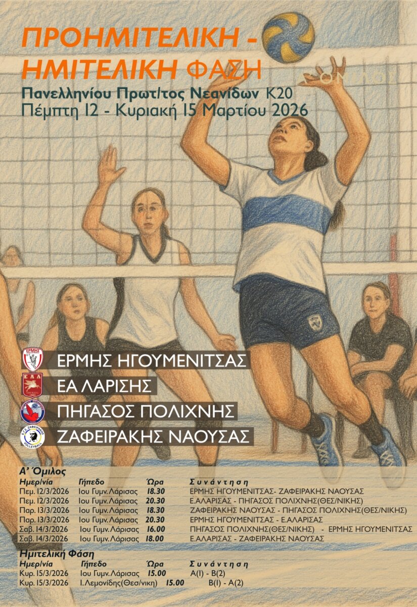 20.30 : Ε.ΑΛΑΡΙΣΑΣ – ΠΗΓΑΣΟΣ ΠΟΛΙΧΝΗΣ(ΘΕΣ/ΝΙΚΗΣ)