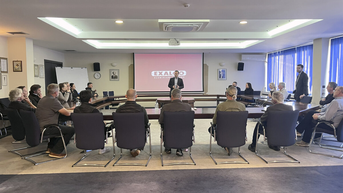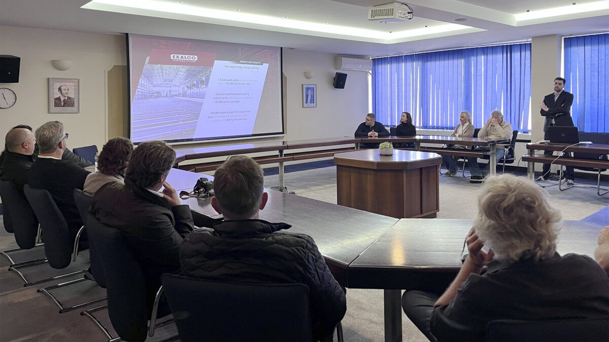 Στη συνέχεια, η ομάδα των αρχιτεκτόνων επισκέφθηκε τα κεντρικά γραφεία της εταιρείας, όπου ο κ. Στέλιος Καντώνιας, επίσης στέλεχος του τμήματος εξαγωγών, παρουσίασε την πορεία ανάπτυξης της EXALCO και τις σημαντικές επενδύσεις που πραγματοποιεί σε νέο μηχανολογικό εξοπλισμό, καθώς και σε έργα αξιοποίησης Ανανεώσιμων Πηγών Ενέργειας.