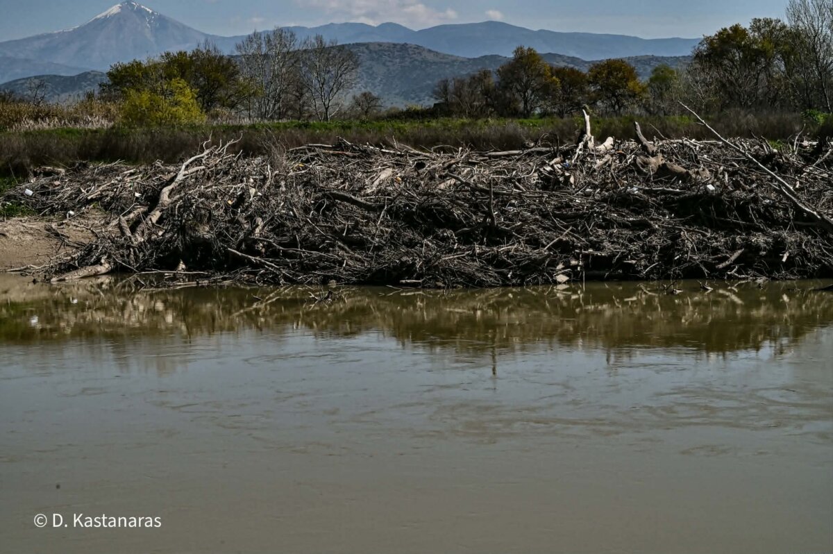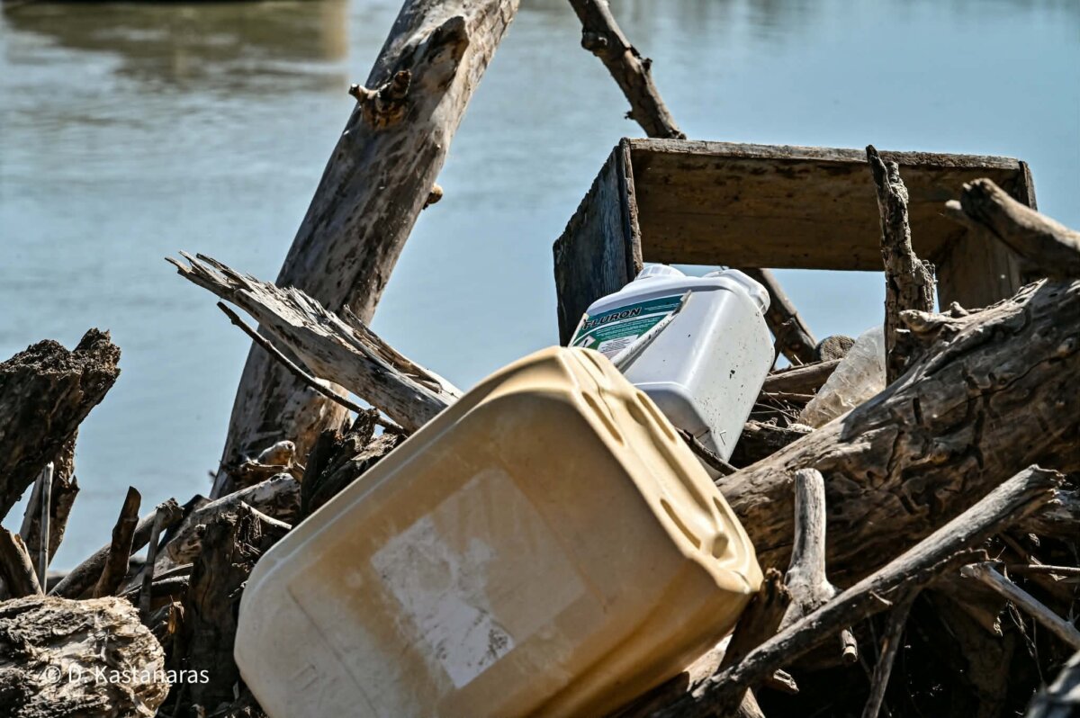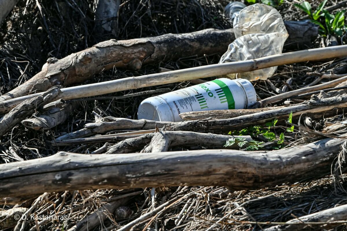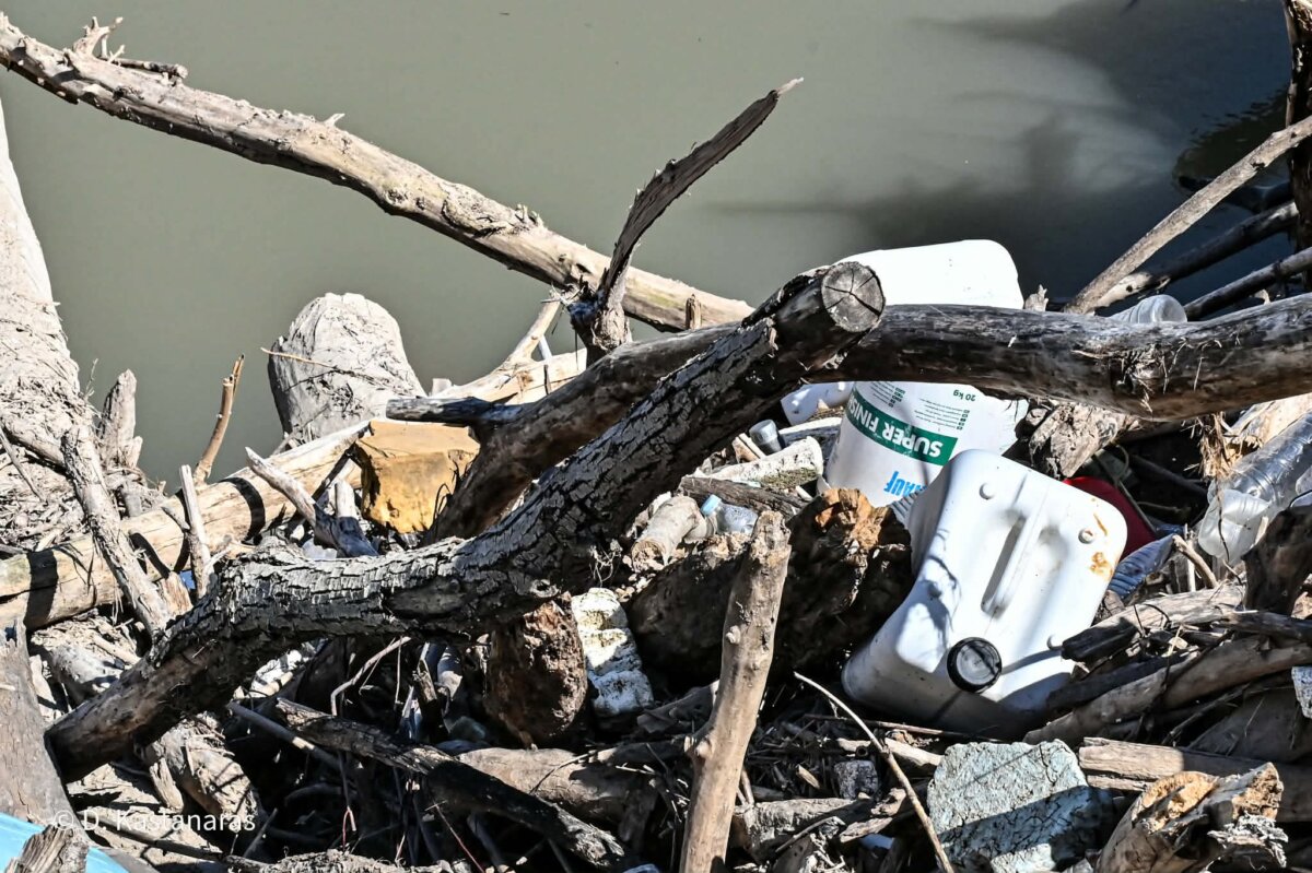 Την ίδια στιγμή, πέρα από τα ξύλα και τα κλαδιά, στην περιοχή εντοπίζονται και άδεια πλαστικά δοχεία από φυτοφάρμακα, τα οποία έχουν καταλήξει τόσο στις όχθες όσο και μέσα στο νερό του ποταμού.