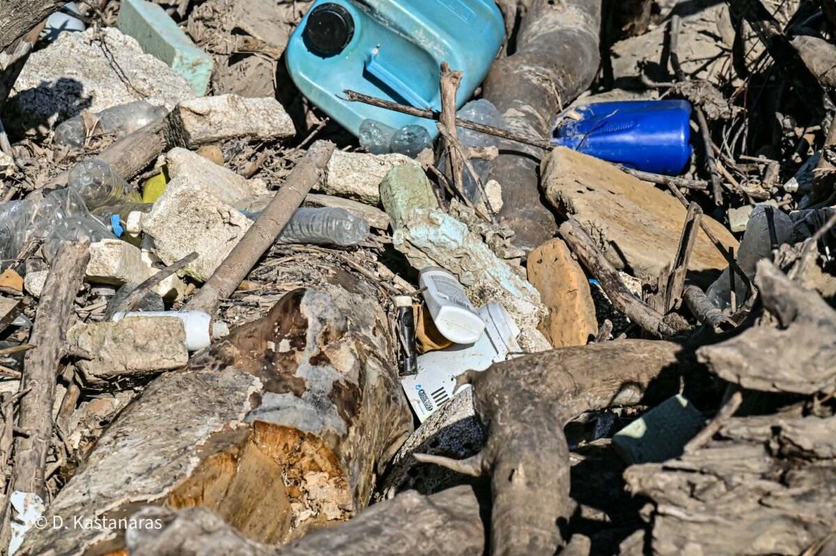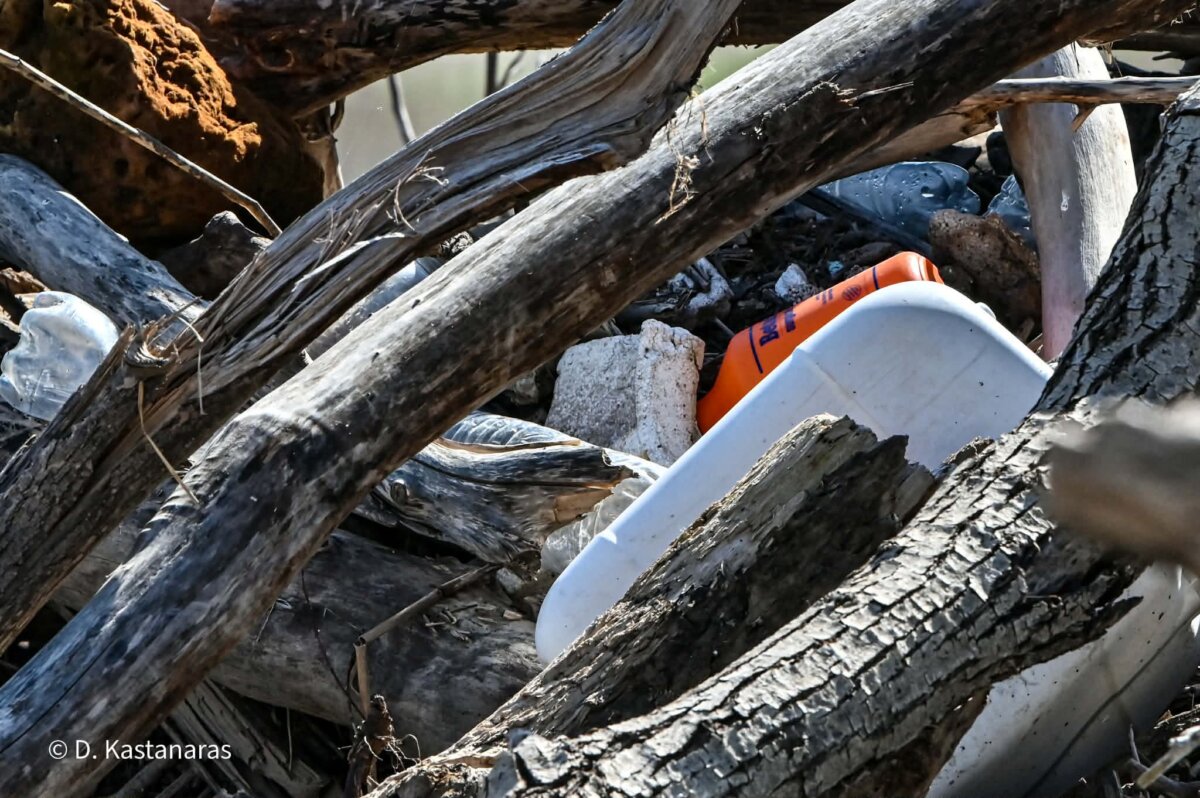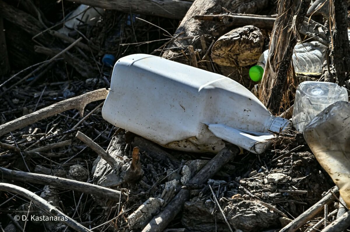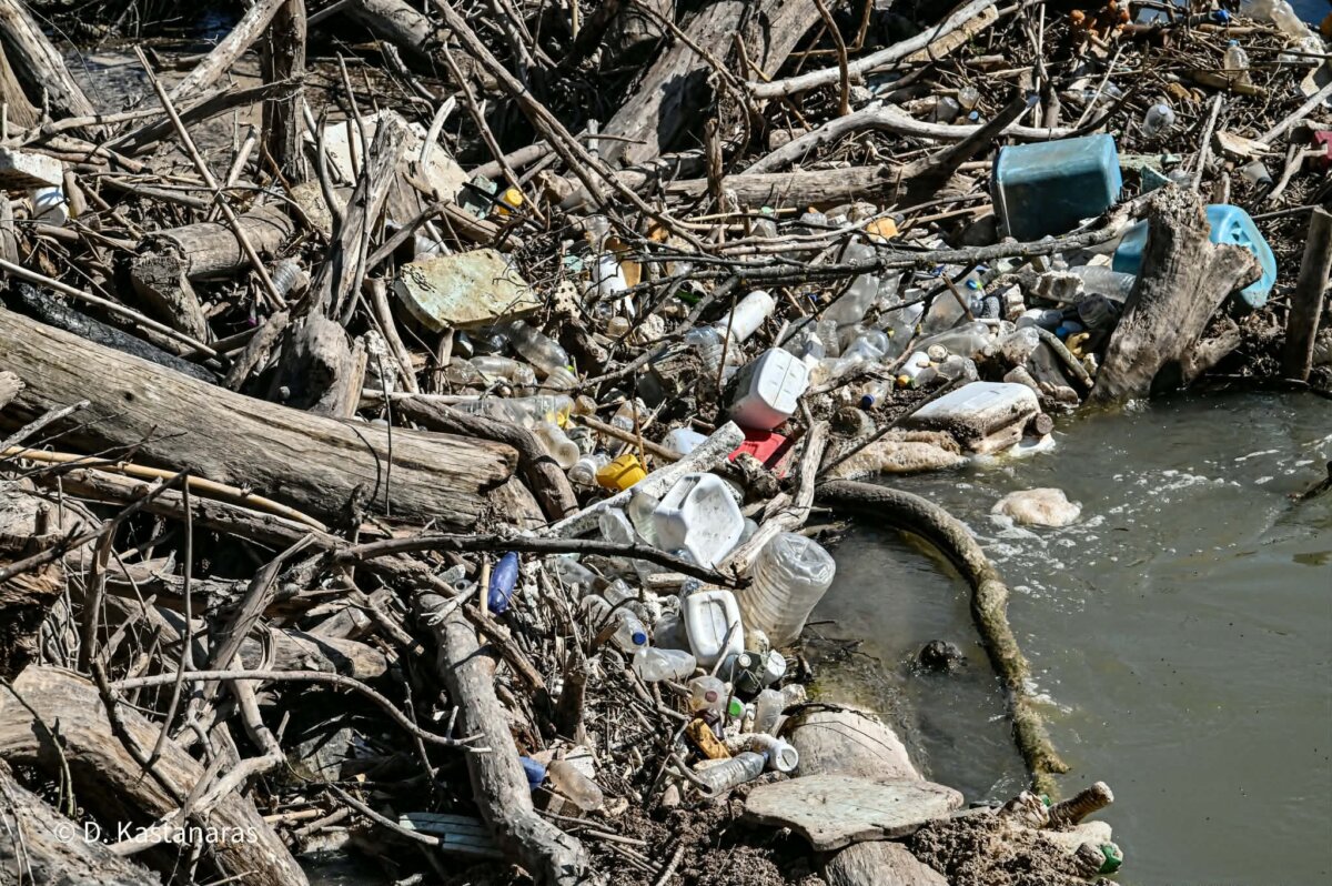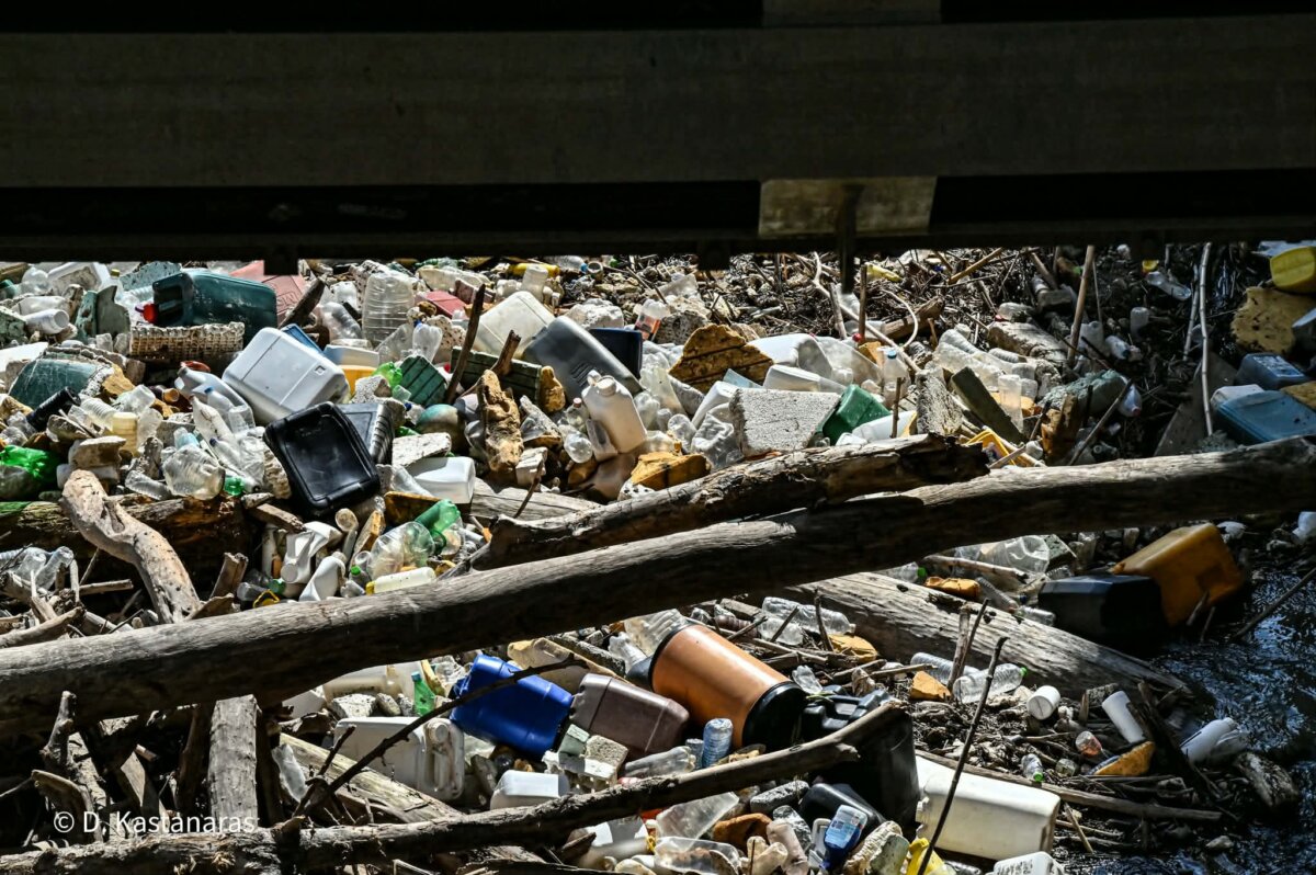 Την ίδια στιγμή, πέρα από τα ξύλα και τα κλαδιά, στην περιοχή εντοπίζονται και άδεια πλαστικά δοχεία από φυτοφάρμακα, τα οποία έχουν καταλήξει τόσο στις όχθες όσο και μέσα στο νερό του ποταμού.