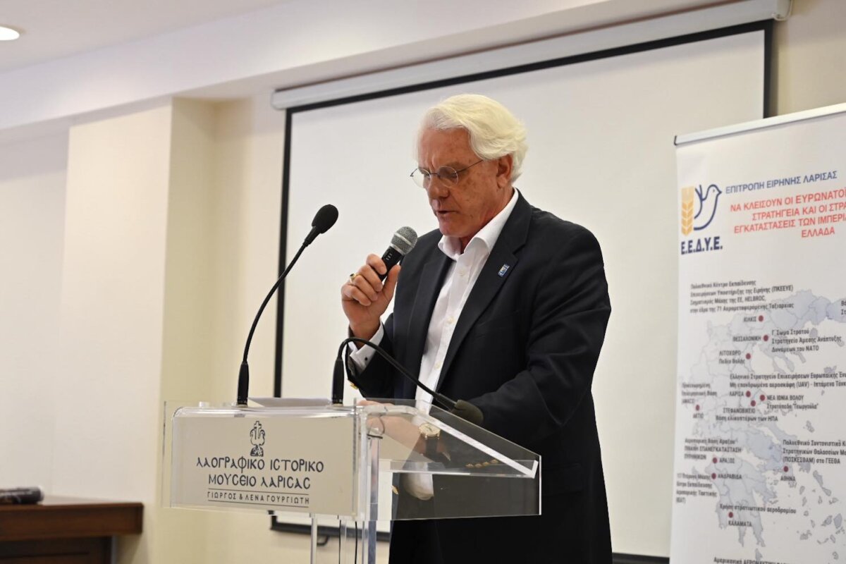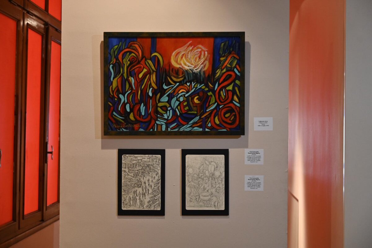 Εγκαινιάστηκε το πρωί της Κυριακής στο Λαογραφικό Ιστορικό Μουσείο Λάρισας – Γιώργος και Λένα Γουργιώτη η 4η Εικαστική Έκθεση καλλιτεχνών του νομού, με τίτλο «Ο πόλεμός τους σκοτώνει ό,τι άφησε όρθιο η ειρήνη τους».