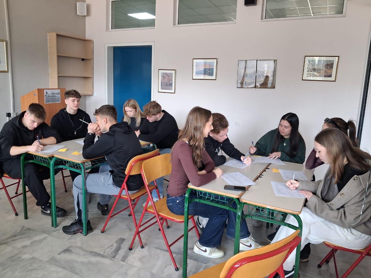 Παράλληλα, οι μαθητές από τη Λετονία παρακολούθησαν μαθήματα του σχολείου μας σε διάφορα γνωστικά αντικείμενα, συμμετείχαν ενεργά στη μαθησιακή διαδικασία και είχαν την ευκαιρία να συζητήσουν και να ανταλλάξουν απόψεις με τους Έλληνες συμμαθητές και τους εκπαιδευτικούς τους. Η εμπειρία αυτή τους επέτρεψε να γνωρίσουν από κοντά το ελληνικό εκπαιδευτικό σύστημα, αλλά και να μοιραστούν στοιχεία από τη δική τους σχολική καθημερινότητα.