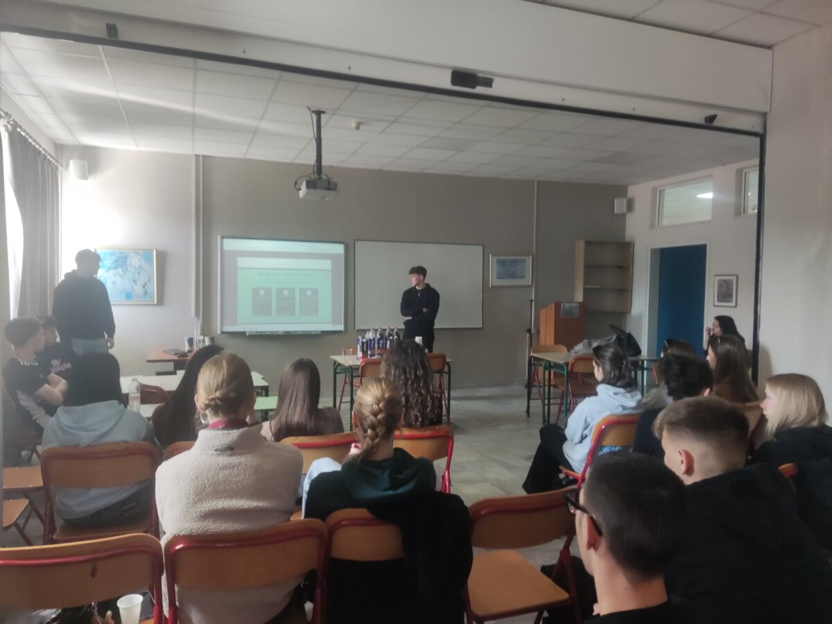 Κατά τη διάρκεια της παραμονής τους στη Λάρισα, οι φιλοξενούμενοι μαθητές επισκέφθηκαν το σχολείο μας και συμμετείχαν σε μια σειρά από εκπαιδευτικές και πολιτιστικές δραστηριότητες. Στην αίθουσα πολλαπλών χρήσεων του σχολείου πραγματοποιήθηκαν δραστηριότητες γνωριμίας και συνεργασίας, μέσα από τις οποίες οι μαθητές των δύο χωρών είχαν την ευκαιρία να αλληλεπιδράσουν, να ανταλλάξουν εμπειρίες και να δημιουργήσουν ένα φιλικό κλίμα επικοινωνίας. Ιδιαίτερο ενδιαφέρον παρουσίασε ένα εκπαιδευτικό παιχνίδι επίλυσης γρίφων που έφεραν μαζί τους οι Λετονοί μαθητές, στο οποίο συμμετείχαν όλοι οι μαθητές σε μικτές ομάδες, καλλιεργώντας την κριτική σκέψη, τη δημιουργικότητα και τη συνεργασία.