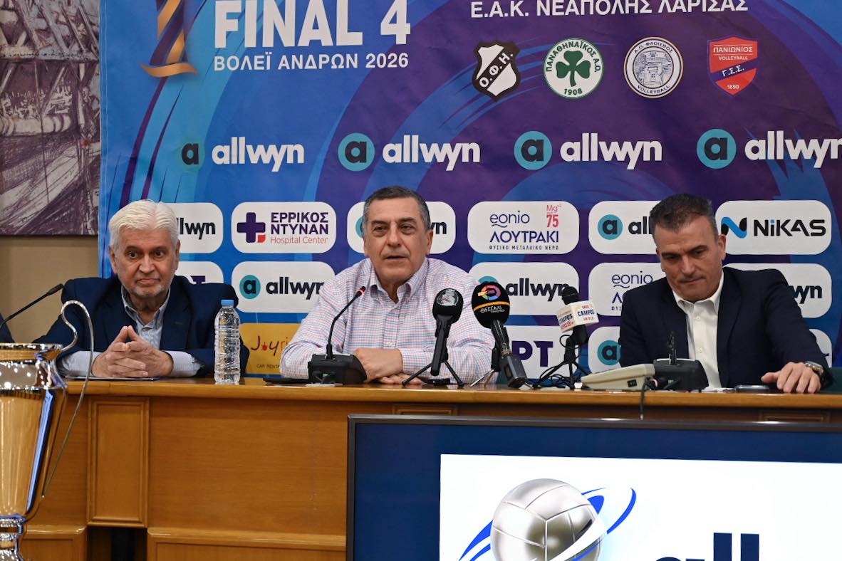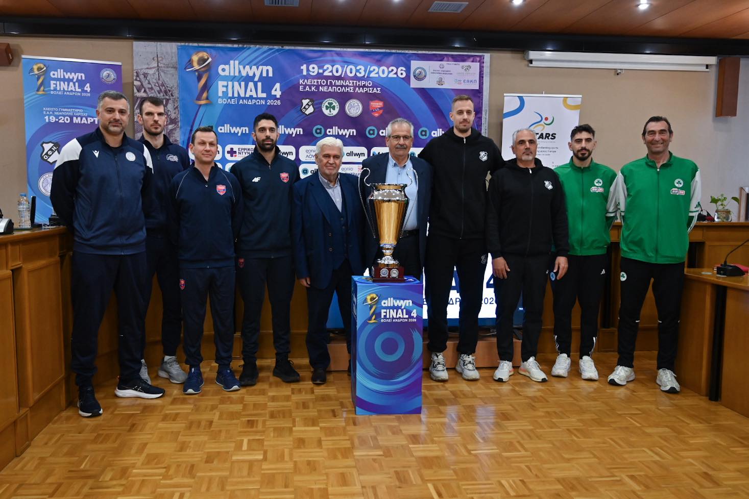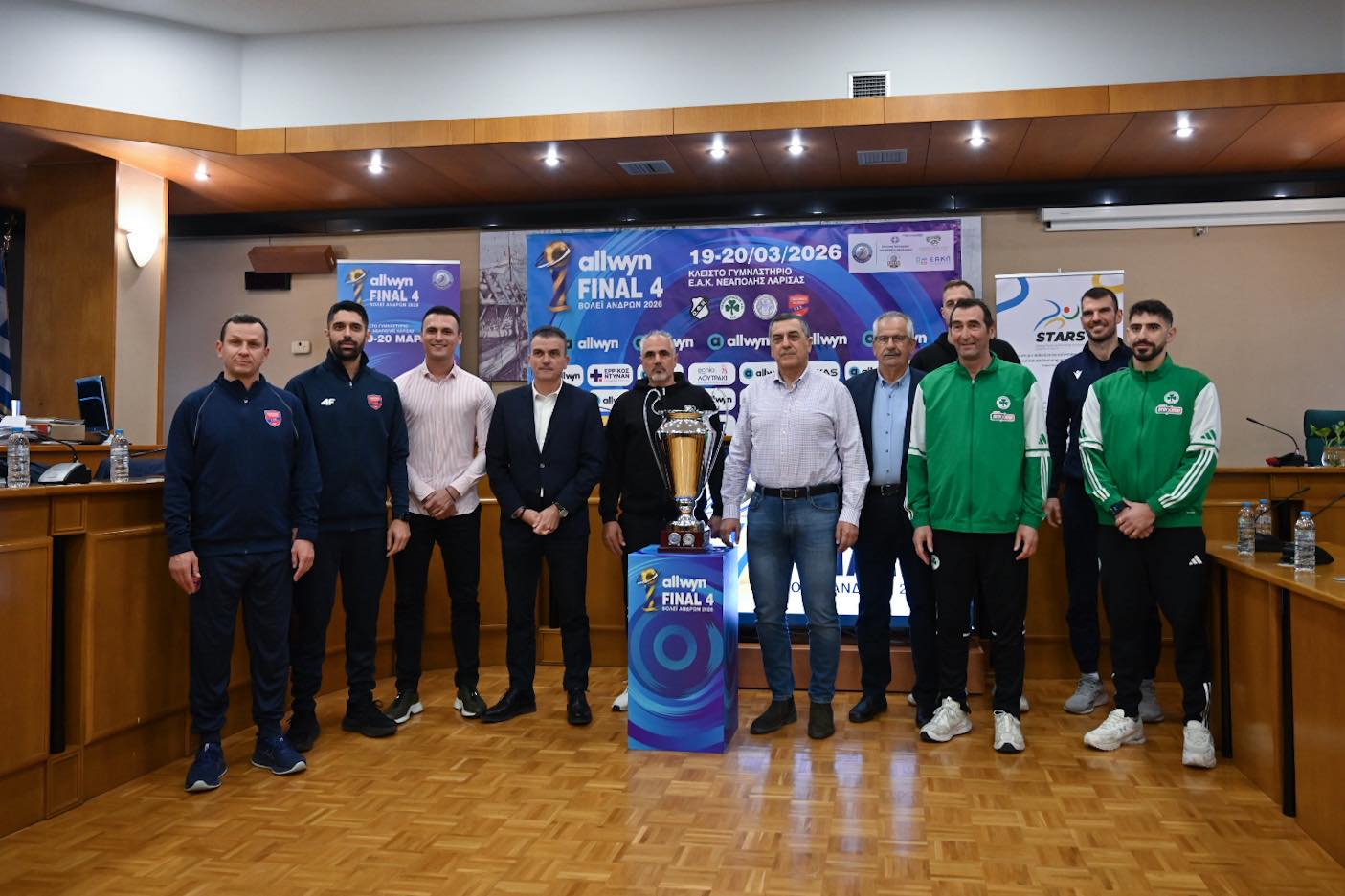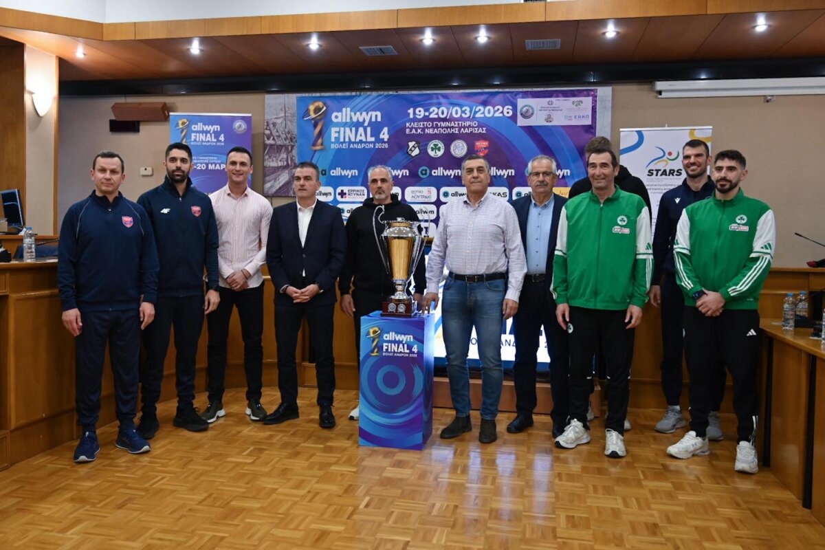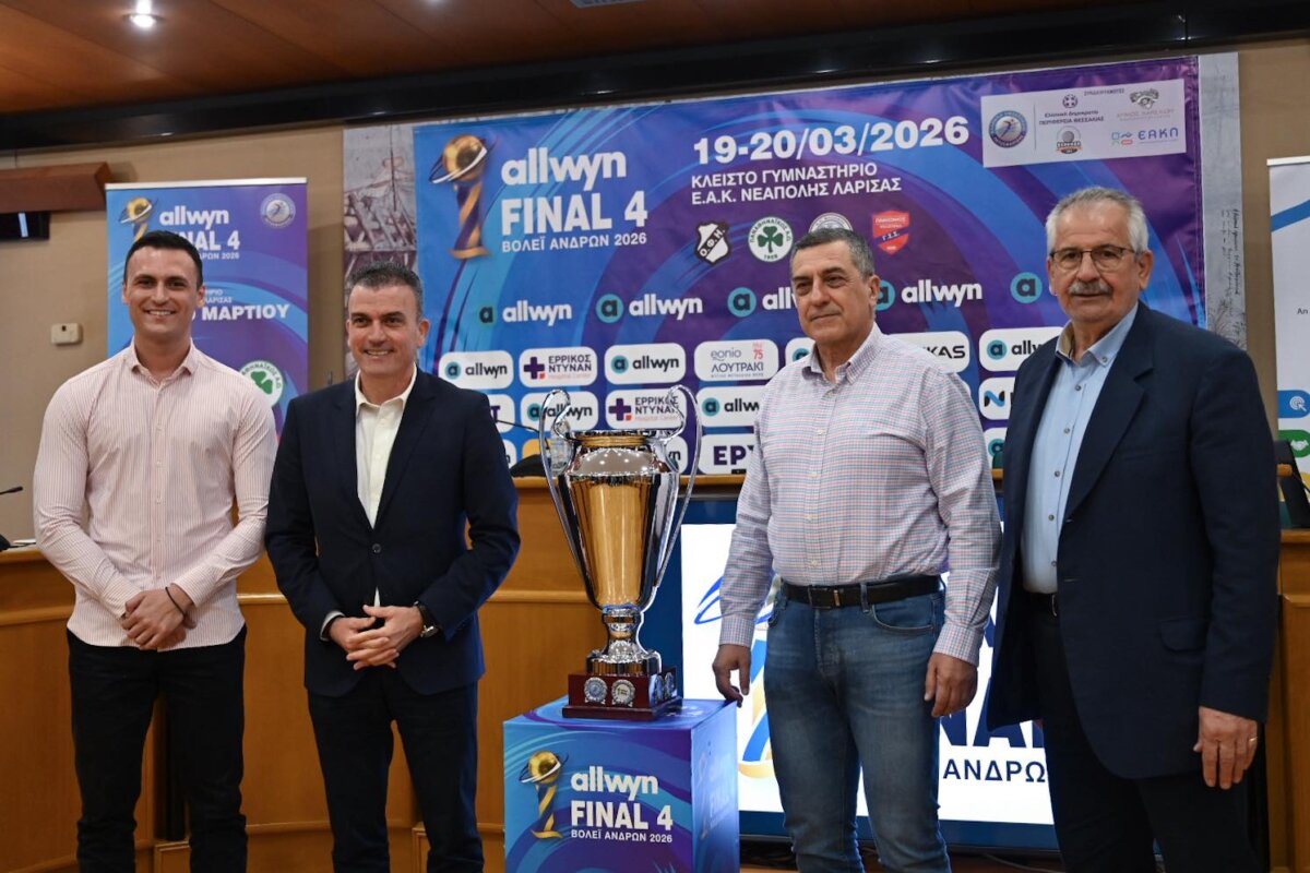 Στο κλειστό γυμναστήριο Νεάπολης Λάρισας θα διεξαχθεί το διήμερο 19-20 Μαρτίου το Allwyn Final-4 του Κυπέλλου βόλεϊ ανδρών, με την αρωγή και την υποστήριξη της Περιφέρειας Θεσσαλίας, του Δήμου Λαρισαίων και της Ένωσης Κεντρικής Ελλάδ
