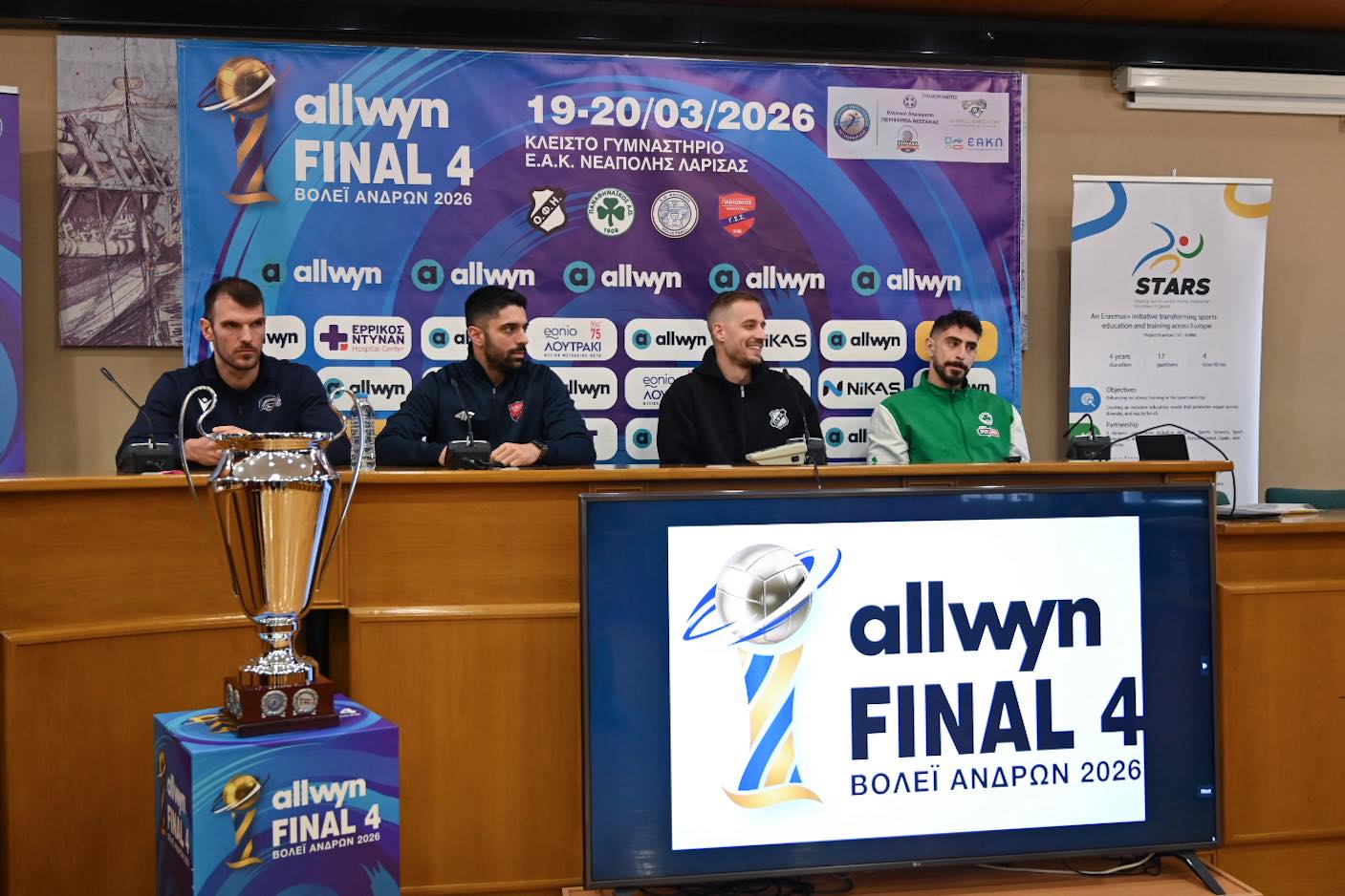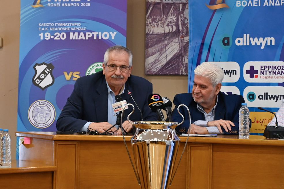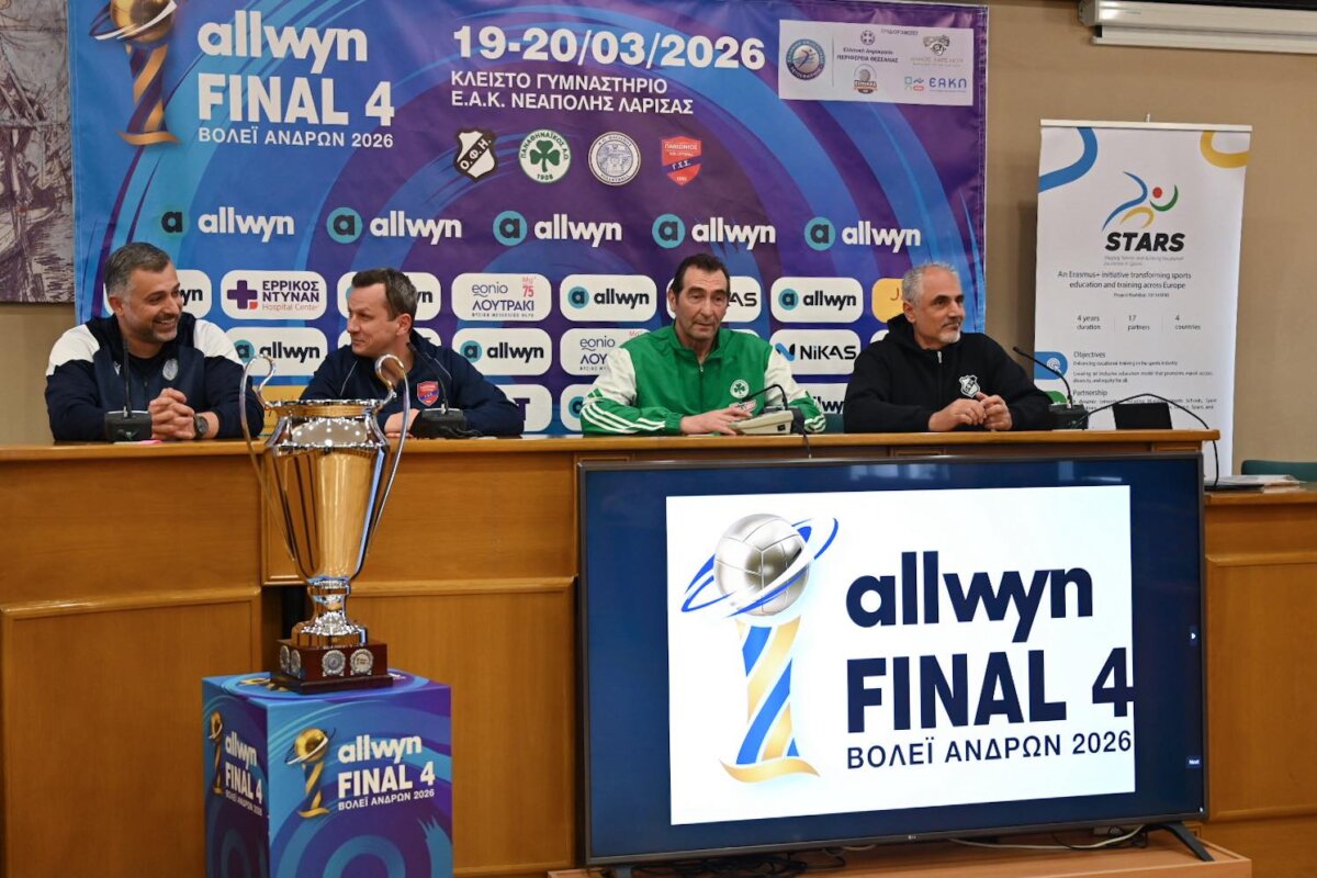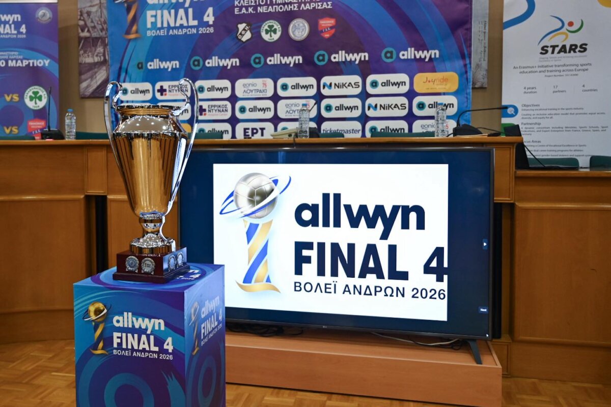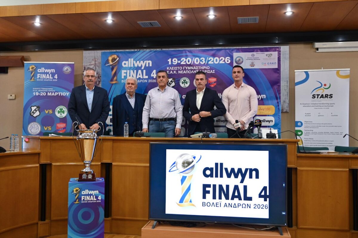 Στο κλειστό γυμναστήριο Νεάπολης Λάρισας θα διεξαχθεί το διήμερο 19-20 Μαρτίου το Allwyn Final-4 του Κυπέλλου βόλεϊ ανδρών, με την αρωγή και την υποστήριξη της Περιφέρειας Θεσσαλίας, του Δήμου Λαρισαίων και της Ένωσης Κεντρικής Ελλάδ